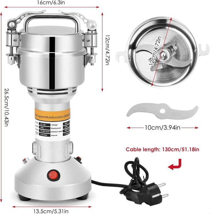 QUIOTUIR Moulin À Céréales Électrique 220 V Avec Entonnoir Et Récipient De Récolte, 400 Kg/h Agriculture, Broyeur Avec 5 Tamis Pour Riz, Maïs, Céréales, Café, Blé