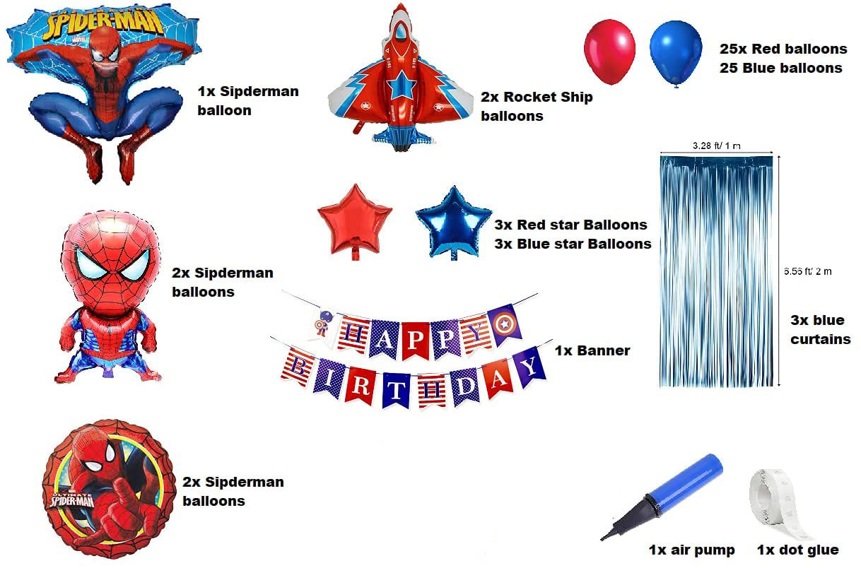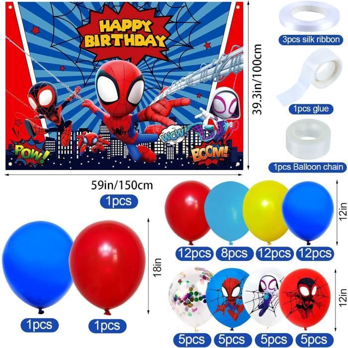 【Installation Facile】Les ballons réutilisables en forme d'araignée pour un 4e anniversaire se gonflent à seulement 85 %. BANDEROLE FOIL BALLOONS 13 ballons araignée en aluminium, égayant l'ambiance de la fête d'anniversaire, Size: 16 pouces BALLON TOILE DARAIGNEE 1 x ballon chiffre 100 cm (2/3/4/5/6),égayant l'ambiance de la fête d'anniversaire, Size: 40 pouces Chaque ballon est sélectionné avec soin. BALLONS LATEX NUMEROTES 20 x ballons latex araignée numérotés déco anniversaire Spiderman - MONSIEUR PAILLETTES 【Utilisation Polyvalente】Les ballons en forme d'araignée sont parfaits pour les anniversaires, les fêtes d'Halloween, les baby showers, les fêtes de fin de semaine et les événements en plein air ! Ce produit est une décoration d'anniversaire et non un jouet pour enfants. Ballons De Décoration De Jeu 14 Ans, Décoration Anniversaire Garçon 14... Deco Gateau Decoration Anniversaire Naruto 43 Pièces,Ballon Naruto Anniversaire 9 Décoration Anniversaire Spider 4 Ans Conseils de sécurité Ballons en latex: une légère odeur d'usine se dissipe à l'air libre Ballon en aluminium: gonflé manuellement à 80 % de sa capacité afin de laisser de la place pour la dilatation thermique et la contraction due au froid Les enfants de moins de 14 ans doivent être surveillés par un adulte Tenir à l'écart des sources de chaleur supérieures à 50 °C et des objets pointus BALLONS ETOILE EXPLOSEE 2 x ballons étoile explosée, Rouge et bleu, Size: 22 pouces Pour organiser un anniversaire thème spiderman, vous propose un large choix de décoration à l'effigie du super-héros, ainsi que de nombreux déguisements pour réussir votre fête Pour un effet flottant, veuillez utiliser de l'hélium Leurs valves auto-obturantes empêchent toute fuite d'air : créez des moments de fête inoubliables sans effort Contient tout ce dont vous avez besoin pour la décoration de la fête, y compris un ensemble d'outils pratiques, déballez simplement et commencez à décorer Un remboursement sans condition est possible en cas de problème avec le produit