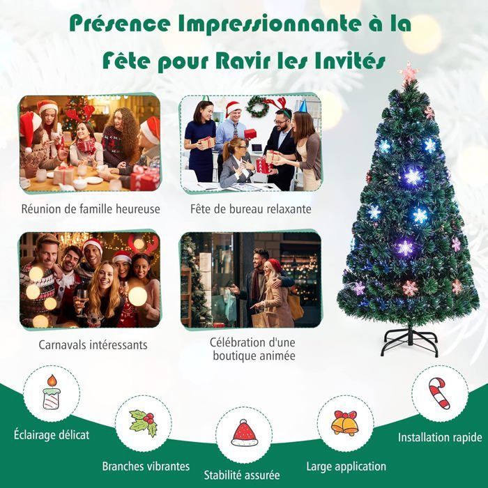 【Base métallique stable】 Le pied en métal à quatre branches assure une excellente stabilité et peut être réutilisé plusieurs saisons Sapin de Noël artificiel avec 150 LED avec support Blanc 150 cm Cet arbre de Noël artificiel moderne, c'est le top pour ceux qui aiment le style épuré et contemporain. Avec ses lignes claires et son design pratique, il se fond facilement dans les espaces intérieurs et extérieurs, apportant une touche chic à ta déco festive 【Densité & sécurité】 Avec 170 branches en PVC ignifugé, il est à la fois dense, sûr et élégant. 【Éclat blanc féerique】 Ce blanc sapin de 150 cm diffuse une lumière douce et colorée à 7 tons, recréant la magie d’un Noël blanc sans guirlande lumineuse supplémentaire. Ce magnifique arbre de noël artificiel avec lumières led et fibre de verre formera la pièce maîtresse frappante de vos décorations de noël. fabriqué en pvc et fibre optique, ce sapin de noël artificiel est très réaliste dans sa forme et son apparence Ensuite, déployez les branches pour un rendu plus naturel et fourni Parfait pour une ambiance chaleureuse et romantique Sapin De Noël Artificiel Sapin De Noël 150 Cm, Arbre De Noël Lumineux 170 LED, 8 Modes D'éclairage, Bureau, Magasin - Décoration De Fête Décoration Noël Blanc Féerique