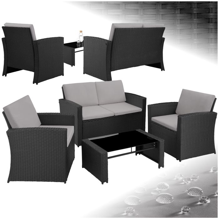 Un vrai plus pour votre mobilier de jardin exterieur, durable et facile à entretenir. Hauteur du dossier: env., 48 cm Matériaux: acier laqué époxy, verre, textilène, inox, polypropylène PROFITEZ D’UN SALON DE JARDIN EXTERIEUR pour jusqu’à 4 personnes, idéal pour vos moments détente en famille ou entre amis. Salon de jardin - TECTAKE - Ensemble détente repas d'extérieur BILABO 8 Hauteur d'assise: env., 37,5 cm Contenu de la livraison: Banquette, 2 chaises, Table d'appoint, Matériel de montage, Instructions de montage La table d’appoint est équipée d’un plateau en verre de sécurité résistant aux chocs. Vous bénéficiez d’un meuble jardin exterieur fiable, qui résiste aux aléas du temps tout en restant élégant et moderne pour votre salon jardin exterieur. Capacité de charge: 35 kg, Poids: env., 7,1 kg L’Ensemble Salon de Jardin Extérieur 4 Personnes de tectake se distingue par son esthétique moderne et épurée. Conçu pour embellir n’importe quel espace extérieur, cet ensemble est composé de matériaux de qualité tels que l’acier et l’aluminium, garantissant à la fois robustesse et légèreté Capacité de charge: 120 kg, Poids: env., 4,1 kg TABLE D’APPONT AVEC PLATEAU EN VERRE DE SÉCURITÉ AMOVIBLE : pratique et stylée, elle vous permet d’installer boissons et snacks en toute sécurité. L’ensemble salon de jardin TecTake® pourrait être la solution idéale, combinant à la fois design moderne et fonctionnalité. Composé d’un canapé, de deux fauteuils et d’une table, cet ensemble en aluminium est pensé pour optimiser votre terrasse ou balcon Sa surface lisse et facile à entretenir est parfaite pour accueillir verres, collations ou objets déco au quotidien. Surface d'assise (LxP): env., 45 x 43 cm Chaise Dimensions totales (LxPxH): env., 55,5 x 70 x 83 cm STRUCTURES STABLES EN ACIER LAQUÉS ÉPOXY, robustes et résistantes à la rouille, assurent la longévité de votre ensemble meuble salon composé de 2 chaise de jardin exterieur, 1 banquette et une table exterieur. Coffre De Jardin Exterieur Tectake® Bain De Soleil Salon De Jardin Exterieur Modulable En Résine Tressée Avec Pare Soleil Pliable, Coussins Inclus, Chaise Longue Relax Mobilier De Jardin Pour Amenagement Balcon Terrasse Données techniques: Banquette Dimensions totales (LxPxH): env., 111 x 70 x 83 cm Facile d’entretien et montage facile, c’est le mobilier jardin parfait pour qui cherche un ensemble jardin pratique, esthétique et durable. Description du produit: Composé de deux fauteuils, d’une banquette d’une table basse, cet ensemble accueille jusqu’à quatre personnes – idéal pour partager un moment convivial en terrasse, sur le balcon ou dans le jardin. Offrez-vous un coin lounge cosy et sans tracas !
