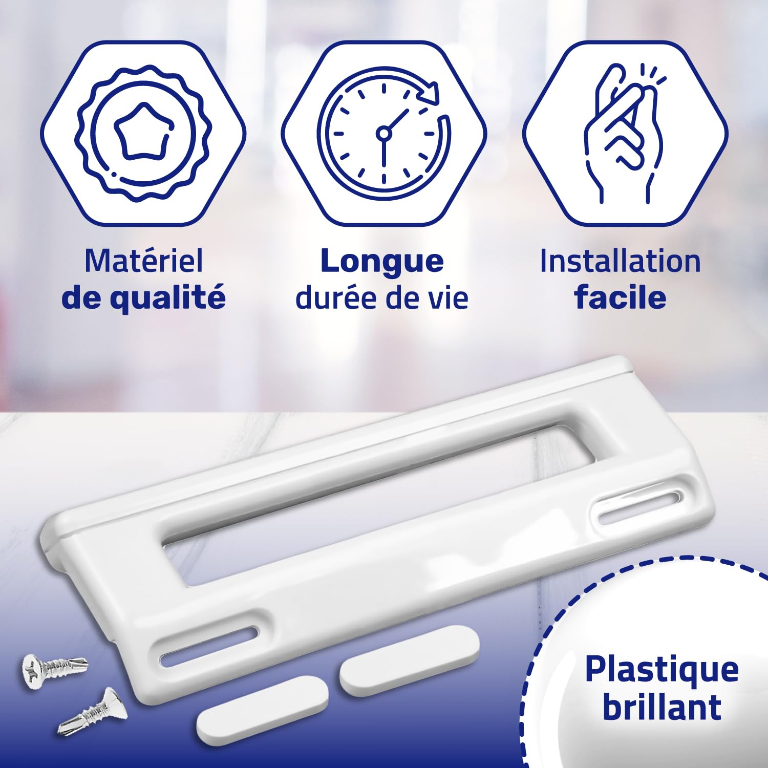 COMPATIBILITÉ - Poignée frigo universelle avec le code original 2236286015 2236286056 223628605/6 2236286122 2251640021 00542367 pour Zanussi pour Aeg pour Electrolux pour Juno pour Zanker Description du produit Compatible pour modèles TAILLE - La poignee frigo universelle a une longueur de 209 mm, une largeur de 89 mm et une hauteur de 48 mm, avec un écartement de 133 mm entre les trous de fixation Poignée de porte ELECTROLUX réfrigérateur ou congélateur (x1) 24251 SOUTIEN - Pour toute question concernant le choix d'une poignee de refrigerateur, notre équipe est disponible pour vous guider et vous aider à faire le meilleur choix MONTERAL Gefrierschrank und Kühlschrank Griff Universal 209 x 89 x 48 mm mit den Originalcode 223628605/6 2236286056 2236286122 für Zanussi für Aeg für Electrolux für Juno - Garantie 10 Jahre Kühlschrank Schlepptür MONTERAL Gefrierschrank Und Kühlschrank Griff Universal 209 X 89 X 48 Mm Mit Den Originalcode 223628605/6 2236286056 2236286122 Für Zanussi Für Aeg Für Electrolux Für Juno - Garantie 10 Jahre Liebherr Kühlschrank Ersatzteile INSTALLATION - La poignee de refrigerateur universel peut être installée en haut ou en bas. Elle se fixe dans la porte du réfrigérateur à l'aide de vis (incluses). Seul un tournevis est nécessaire pour l'installation