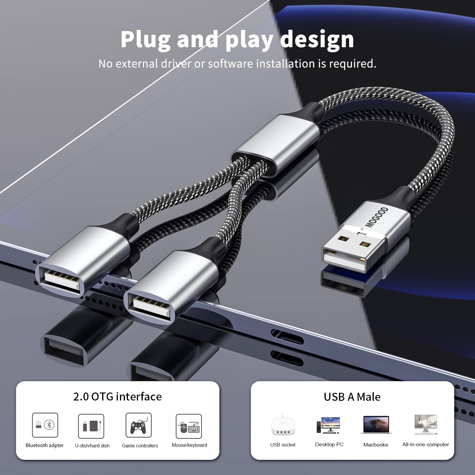 Ce répartiteur est un accessoire indispensable pour améliorer la connectivité de vos appareils dans un environnement professionnel, à la maison ou en déplacement. Doté d’un connecteur USB A mâle vers deux ports USB A femelle, il vous permet de charger et de transférer des données simultanément sur deux appareils différents, sans interférences ni perte de vitesse. Il est également capable de fournir jusqu’à 5V/2A pour la recharge de vos appareils électroniques. Branchez simplement le câble sur votre appareil et utilisez-le instantanément pour charger ou transférer, à la maison ou en déplacement. Compatibilité Étendue : Câble séparateur usb fonctionne avec la plupart des ordinateurs, tablettes, smartphones, consoles, voitures. Hub USB Pour PC Voiture Console BASESAILOR Câble USB Répartiteur 0.3M,Type C Mâle Vers 2 Femelle Multi Usb Double Connexion USB Simultanée : Câble usb répartiteur transforme un port USB A en deux ports pour connecter deux appareils à la fois. Plug and Play Sans Pilote : Hub usb double port aucun logiciel nécessaire. Il suffit de brancher le répartiteur pour qu’il fonctionne immédiatement. Fonction Charge et Données : Ce câble Y usb répartiteur permet de charger un appareil et de transférer des données via l'autre port simultanément. 11-1 Gris - Station D'accueil Hub Usb Type C Avec Adaptateur Hdmi 4k... Ce câble USB répartiteur Y est la solution idéale pour connecter et gérer plusieurs appareils en même temps à partir d’un seul port USB A. Compact et léger, il se transporte facilement dans une sacoche ou une poche d’ordinateur. Le transfert de données est fluide et rapide, idéal pour les gros fichiers. Ce câble USB est compatible avec une large gamme de dispositifs, notamment les ordinateurs portables, PC de bureau, MacBook, tablettes, smartphones, iPads, iPhones, GPS, consoles de jeux (PS4, PS5, Xbox), systèmes embarqués de voiture, etc. Rpanle Câble USB Splitter Y, USB 2.0 A Male To 2 Dual USB Jack Femelle Y Splitter Hub Câble Adaptateur Cordon D'alimentation 35 Cm Pour Laptop HDD SDD 2025 Upgraded] USB 2.0 A Male to 2 Dual USB Female Jack Y Splitter Hub Power Cord Extension Adapter Cable(Not Supporting CarPlay and Android Auto Le paquet comprend: 1 * adaptateur usb mâle vers 2 femelles (argenté)