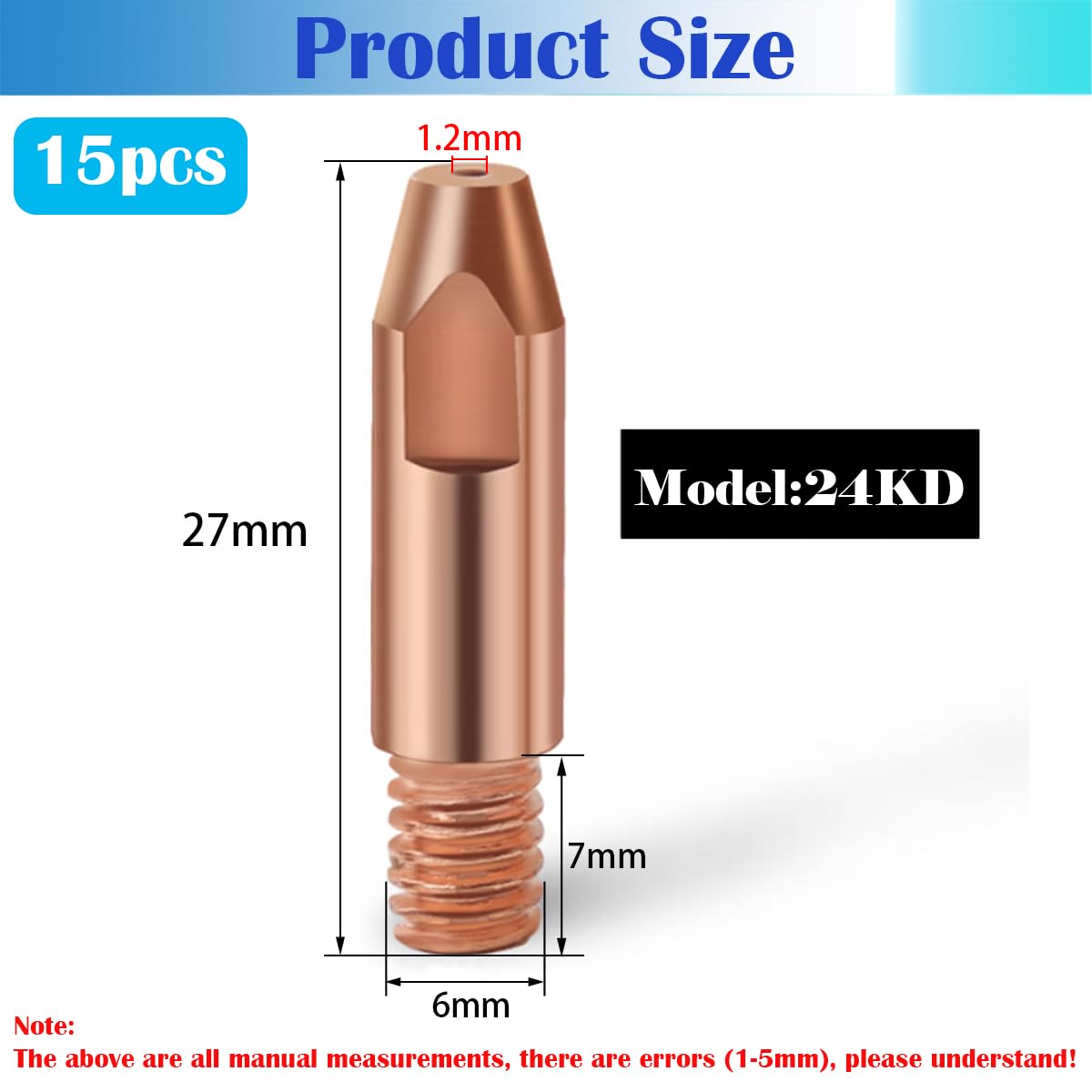 Veuillez prévoir une marge d'erreur de 1 à 5 mm en raison de la mesure manuelle et des différences entre les différents moniteurs. Application: Convient aux appareils MIG MAG avec torche de soudage AK15 / MB-15 des autres fabricants. Assemblage facile de pièces d'usure sur le brûleur, pas d'outils spéciaux nécessaires. >>> Application Caractéristiques: Cuivre rouge T2 sélectionné de haute qualité. Assemblage facile de pièces d'usure sur le brûleur, pas d'outils spéciaux nécessaires. >>> Fonctionner: la pointe de contact de soudage a une structure simple, l'intérieur de l'ouverture est lisse, il est facile à se mettre en place et facile à installer et à démonter. >>> Matériel: Utilisez du cuivre rouge T2, qui a une excellente conductivité, une conductivité thermique, une ductilité et une résistance à la corrosion, peut transmettre un courant constant au fil. >>> Avantages: l'ouverture supérieure, moyenne et inférieure est cohérente, la concentricité est élevée et la livraison de la soie est lisse, ne bloquant pas la soie, durable et brûlante. Embouts de Contact Mig CO2 0.8x25mm, 20 pièces, po... – Grandado Le cuivre rouge T2 présente une excellente conductivité thermique, une ductilité et une excellente résistance à la corrosion. CONSEILS DE CONTACT 0.9mm + Buse Support Schutzgasd se MB-15AK Mig/Mag Buses Soudure Mig Mag 0.8mm Embouts De Contact Pour Soudage, Dujelixa 20 Pièces 15AK Power Nozzle Conseils Contact Soudage 15AK M6 Veuillez vous assurer que cela ne vous dérange pas avant d'acheter. Une large gamme d'applications, telles que le soudage sur chantier, le soudage de pipelines, la maintenance mécanique, etc. Exemple d'installation (le kit contient uniquement des pointes de contact) : Rappel : Le diamètre des pores de la bouche conductrice est de 0,8 mm. Veuillez sélectionner l'ouverture appropriée en fonction de la taille du fil de soudage. Contenu de l'emballage :