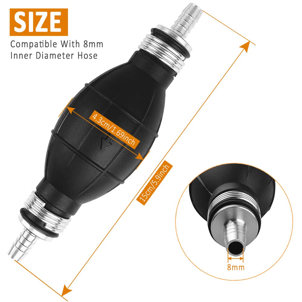 Avec ses attaches à double étanchéité et sa forme incandescente, elle assure une puissance d’aspiration élevée, accélérant ainsi le pompage de liquides. Vous pouvez compter sur cette pompe pour résister aux rigueurs d’une utilisation régulière, tout en garantissant une performance optimale. Design Optimisé pour l’Efficacité : Grâce à sa conception épaissie avec des attaches à double étanchéité, cette poire d’amorçage assure un pompage rapide et efficace des liquides. Matériaux : Cette pompe à main est fabriquée à partir d’un alliage léger et de caoutchouc. Cette pompe à main est adaptée à un large éventail d’applications, allant des hélicoptères et navires aux motos et systèmes de carburant. Que vous souhaitiez pomper de l’essence, du diesel, de l’eau ou d’autres liquides, cette pompe est la solution idéale pour une utilisation pratique et efficace, que ce soit pour votre voiture, votre bateau ou même votre jardin Poire d'amorçage gasoil amovible - Sport Conçue pour résister à l’usure et à la déchirure, elle offre une longue durée de vie, idéale pour un usage intensif dans diverses conditions. Profitez d’un produit fiable et pratique pour tous vos besoins de transfert de liquide. Applications Multiples : Cette pompe est adaptée à une large gamme d’applications, allant des hélicoptères et des navires aux motos et autres systèmes d’alimentation en carburant. Grâce à leur conception pratique et durable, ces pompes vous accompagneront dans tous vos projets de transfert de liquide. Pompe Amorcage Gasoil 2 Pcs Poire D'Amorçage Carburant 8mm, Pompe De Transfert De Carburant Poire D Amorçage Carburant Contenu du produit : 2 manuels de pompe à essence de 8 mm. OUTIL SIMPLE ET EFFICACE: Poire ;amorçage pour le jet de moteurs diesel sur les vidanges de réservoir de carburant de voiture, de moto, de bateau et de moto mobile, robuste et bien faite. Démarrage sans difficulté Avec des valves en métal de 8 mm et un corps mesurant 154 x 46 mm, cette pompe s’intègre facilement dans divers systèmes de tuyauterie. Que vous souhaitiez pomper de l’essence, du diesel, de l’eau ou d’autres liquides, cette pompe est la solution idéale pour une utilisation pratique et efficace, que ce soit pour votre voiture, votre bateau ou même votre jardin. Que vous soyez un professionnel ou un amateur, vous trouverez que l’installation est simple et rapide, vous permettant de vous concentrer sur ce qui compte vraiment. Découvrez la pompe à main Poire d’Amorçage Carburant 8mm, un accessoire essentiel pour tous vos besoins de transfert de liquide. De plus, le matériau à faible perméation garantit que les liquides restent intacts et ne s’évaporent pas, même par temps chaud ou froid. Contenu de l’Emballage : Le paquet comprend deux pompes à carburant en caoutchouc de couleur noire, prêtes à l’emploi.