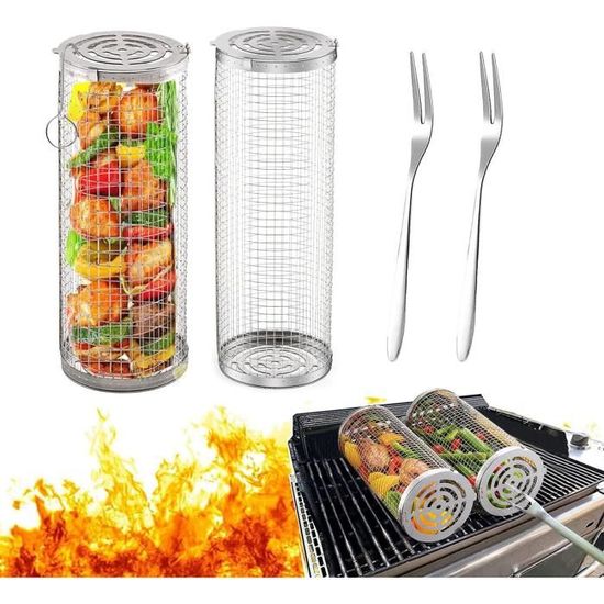 Rôtir Noix Café Panier De Gril Roulant, Rotatif à 360 Degrés, Antiadhésif Grille De Cuisson Tournante Le panier BBQ Grill mesure environ 30 x 10 x 10cm / 11,8 x 3,94 x 3,94 po, suffisamment grand pour contenir différents aliments, et il vous permet de cuisiner beaucoup de délicieux aliments en même temps Considération du goût et de l'effet de cuisson, il est approprié au cuire 600-900 g (21-32 oz) chaque fois.Ce panier à rôtissoire en acier inoxydable convient... Panier de cuisson multifonction pour légumes, frites, poissons Grille à rôtir, panier à four rotatif à 360 degrés en acier