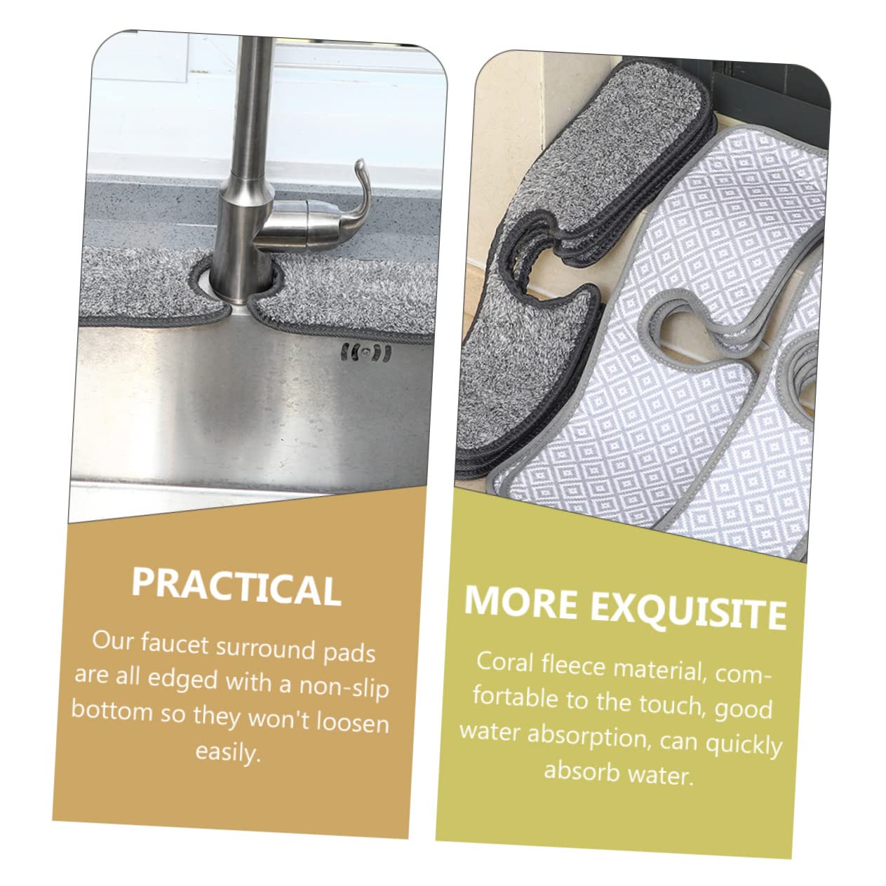 Collecteur d'égouttement pour robinet d'évier - pratique et pratique, le de séchage aide à prévenir les éclaboussures d'eau les fuites du robinet, et le protège votre comptoir des rayures, collecteur d'égouttement de la poignée du robinet MATÉRIAU ABSORBANT L'EAU : Ce tapis de séchage de robinet gris est fabriqué en polyester, qui est doux au toucher, résistant à l'abrasion, infroissable, solide et a une forte capacité d'absorption de l'eau pendant une longue période le paquet comprend 1 x tapis de robinetcaractéristiques -taille: 46,00x14,00x1,00 cm/18,08x5,50x0,39 pouces (l) absorbants pour évier- couleur: comme indiqué collecteur de gouttes pour robinet-taille:46., 00x10., 00x1., 00cm/18., 08x3., 93x0., 39in (s) tapis de drainage pour évier de cuisine-matériau:tapis en polyester pour évier- adaptable aux comptoirs de cuisine, aux éviers de salle de bain et à d'autres endroits. Collecteur d'égouttement - le collecteur d'égouttement à poignée de robinet a un design simple, mais très pratique à utiliser, vous offrant une bonne expérience d'utilisation, tapis d'évier de cuisine Receveur de robinet - le collecteur d'égouttement de la poignée du robinet peut être lavé à la main à la machine à laver, le produit convient à toutes les personnes, protections contre les éclaboussures d'évier de cuisine Tapis de robinet - de plus, le coussin peut vous offrir plus de commodité et vous serez satisfait, finition soignée, durabilité, collecteur de gouttes de robinet - idéal pour une utilisation à long terme. Cabilock 4pièces Tapis Absorbant pour Robinet Cuisine Lot de Récupérateurs De Gouttes Protection Anti-éclaboussures pour Évier comptoir idéal et fournitures ménagères pour un usage quotidien à la maison dans la salle de bain la salle de . - Le collecteur de gouttes de la poignée du robinet n'est pas facile à déformer à décolorer. description des produits coussinets d'évier lavables, ils sont flexibles, résistants aux rides, à l'usure et au toucher confortable, vous offrent une expérience d'utilisation confortable. Inventé, conçu et breveté par une maman à Austin, Texas. Dites adieu au nettoyage constant et à lessuyage des gouttes, des éclaboussures et des flaques deau... Collecteur Gouttes Robinet Cabilock Tapis Absorbant Anti-éclaboussures Pour Robinet De Cuisine Mat Tapis Absorbant Cuisine - tapis absorbants pour robinet sont fabriqués dans un matériau possédant une super capacité d'absorption d'eau et d'absorption d'huile.