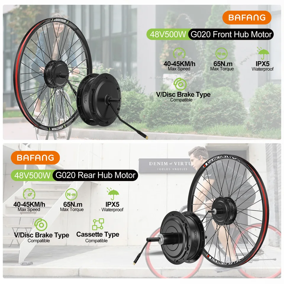 Votre cassette ne doit pas avoir plus de 10 vitesses Ce moteur de roue avant sans balais assure des démarrages et des accélérations rapides, atteignant des vitesses maximales de 30-35 k-m-h. Kit roue avant 500W batterie cadre 36V pour vélo CARGO et TANDEM Kit de conversion vélo électrique avec moteur sans balais, roue électrique, choix de puissance... Commodité & Praticité: La facilité d'installation rend la personnalisation et la modification plus simples. Bafang-Kit de motorisation de vélo électrique 48V, 500W En même temps, la flexibilité des trois modes de fonctionnement rend chaque trajet agréable, qu'il s'agisse de déplacements urbains ou de voyages longue distance Notez que le pneu de vélo et la cassette ne sont pas inclus. Kit Vélo électrique BAFANG Kit Moteur Roue Avant 500W 48V Kit De Conversion De Velo écran DZ40 Il est adapté aux vélos en alliage d'aluminium avec une taille de patte avant (largeur de la fourche avant) de 100mm, et convient uniquement aux systèmes de transmission par chaîne équipés de freins à disque. Affichage LCD DZ40: avec un écran de 1,9 et quatre boutons intégrés, il se caractérise par sa facilité d'utilisation. Moteur Haute Efficacité: Le roue avant moteur Bafang 48V 500W, délivrant jusqu'à 65N.