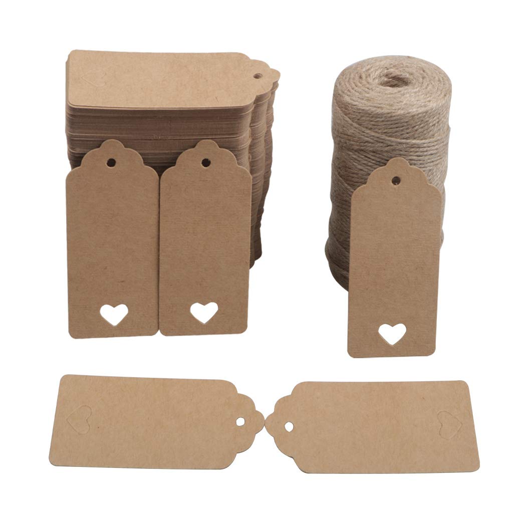 G2PLUS 100PCS Étiquettes Kraft,Étiquette Cadeaux,7x2cm Kraft Étiquettes Etiquette Kraft Darling Souvenir Lot De 100 étiquettes Cadeaux En Papier Kraft Marron Avec Ficelle De Jute Naturelle Etiqueteuse Manuelle Les étiquettes sont fabriquées à partir de papier kraft de qualité 350 g qui absorbe bien l'encre, le marqueur ou le tampon 100 pièces par jeu avec une pelote de jute (environ 30 mètres VBESTLIFE étiquettes en papier Kraft Lot de 100 étiquettes de vêtements...