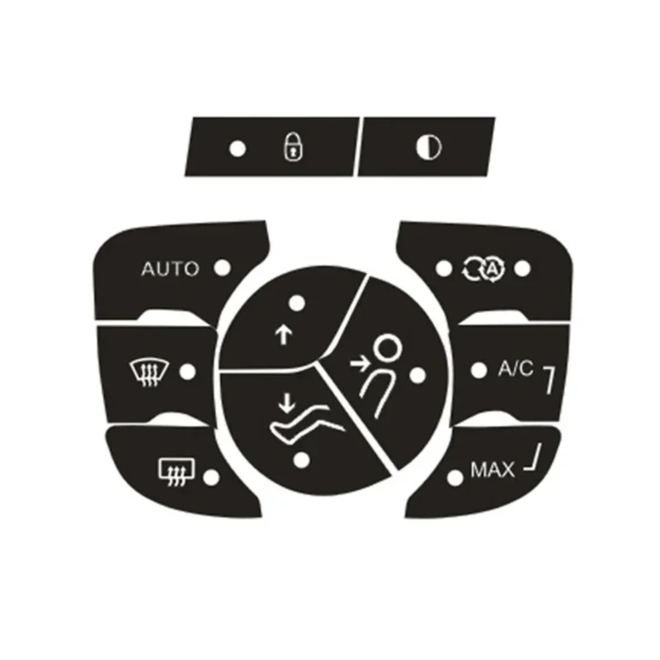 Autocollant de contrôle de véhicule : conçus pour les boutons Clima T5/T6, ces autocollants en vinyle de haute qualité restaurent les boutons usés avec un lettrage blanc sur fond noir. Caractéristiques : * Nom de la pièce : autocollant de réparation de bouton. *Matériau : vinyle de haute qualité., Couleur : noir. Vérifiez toujours la compatibilité des boutons avec l'intérieur de votre véhicule avant de commander pour des résultats optimaux et une satisfaction optimale. Ces superpositions de boutons conservent leur apparence même avec une utilisation régulière, offrant une alternative rentable au remplacement complet des boutons. Superposition Boutons Contrôle Climat Voiture Autocollant Pour Bouton De Climatisation De La Console Centrale De Réparation Tableau De Bord Voiture Visibilité/fonctionnalité améliorées : réduit les problèmes de pénétration de la lumière tout en permettant l'éclairage à travers des caractères blancs. Ajustement parfait : chaque autocollant adhère fermement à vos cellules de contrôle avec une couverture complète, y compris les bords. Compatibilité : Pour T5 ForT6., (Lors de la commande, vérifiez si les boutons sont compatibles avec l'intérieur de votre voiture. Matériau en vinyle de haute qualité : fabriqué à partir de vinyle de qualité supérieure qui résiste à l'abscission et à la dégradation du soleil. Il contient deux feuilles de décalcomanies en vinyle noir, à coller sur les boutons existants pour les rendre de nouveau lisibles. Marque Geartronics, donc de... * La lumière réfléchie du tableau peut être éclairée par l'écriture blanche et le signe. ) Contenu de l'emballage : 1 autocollant de réparation de bouton. Le contraste soigneusement conçu rend les boutons plus faciles à lire dans différentes conditions de lumière, améliorant votre expérience de conduite. * Compatibilité haute universalité : = non., * Type : bouton poussoir. Autocollant de réparation de bouton : ce lot comprend un autocollant en vinyle de haute qualité conçu pour la réparation des boutons, un ajustement parfait pour vos cellules de contrôle Argent)Autocollant adhésif pour bouton d'arrêt de démarrage du moteur Appliquez directement sur les cellules de contrôle pour un aspect rafraîchi qui s'intègre parfaitement à l'intérieur de votre véhicule.