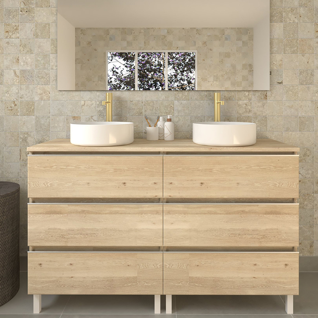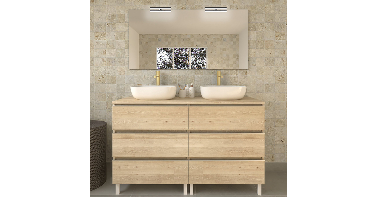 Le TIGO 1D2S est un meuble de salle de bain élégant et fonctionnel, alliant design moderne et savoir-faire de qualité. Sa façade verticale rainurée (imitation lamelles) en Chêne Evoke chaud apporte style et caractère naturel au meuble La poignée supérieure fraisée permet une ouverture facile sans composants supplémentaires. Armoire Salle De Bain TIGO - Armoire De Salle De Bain Suspendue, étagère, Chêne à Façade Rainurée - Maison Armoire Salle De Bain 140 Cm Le TIGO 1D2S est une armoire de salle de bain élégante et fonctionnelle qui séduit par son design moderne et sa finition impeccable. Espace de rangement : deux tiroirs spacieux avec découpe pratique pour siphon offrent un espace optimal pour les accessoires de salle de bain Équipement : lavabo blanc de haute qualité, assorti à l'armoire de 140 cm de large, l'armoire est conçue pour être montée sous un lavabo à poser - l'espace ouvert pour le siphon et la disposition réfléchie des compartiments de rangement et des tiroirs en font une solution extrêmement pratique. armoire salle de bain d'angle Meuble de salle de bain, chêne evoke, 140 x 37,5 x 53 cm La combinaison d'une armoire avec couvercle ouvrant vers le bas (motorisé) et de deux tiroirs spacieux fait du TIGO 1D2S un meuble non seulement décoratif, mais surtout pratique qui simplifie l'organisation quotidienne de la salle de bain. DIMENSIONS : dimensions compactes de 140 cm de large, 53 cm de profondeur et 37,5 cm de hauteur, idéal pour les grandes salles de bains, espace pour siphon (ouverture : 12,5 cm de large x 16 cm de profondeur) La façade distinctive avec fraisage vertical (imitation lamelles) dans un aspect chêne Evoke chaud confère au meuble un caractère élégant et naturel.