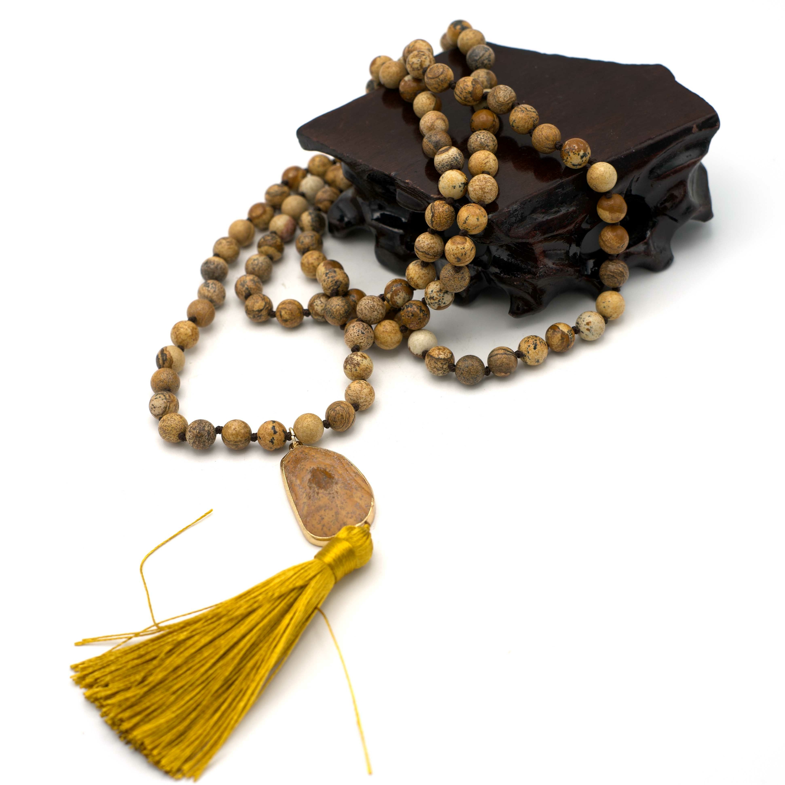 Collier de 108 perles de prière Mala | Pierre précieuse géologique naturelle | Cadeau de pleine conscience pour amoureux L'artisanat intemporel de la nature Chaque pendentif est sculpté dans du cristal massif, poli pour un lustre hypoallergénique qui glisse en douceur sur les tissus., Son min unique Parcourez notre sélection de 108 perles collier de prière mala : vous y trouverez les meilleures pièces uniques ou personnalisées de nos boutiques Collier ou bracelet Mala : ce long collier de perles est orné de sept cristaux puissants qui subliment l'aura, favorisent une circulation énergétique harmonieuse et soutiennent les pratiques de yoga et de méditation. Révélez Votre Essence :Bijou minéral artisanal: Ce design unisexe en pierres authentiques conjugue élégance intemporelle et force tellurique. Signature de la Nature Cristaux naturels aux veines minérales uniques : Chaque pendentif en cristal brut authentique présente des nuances de texture et de couleur formées par des processus géologiques millénaires. Collier œil De Tigre 6mm Pompon Méditation Mala Perles 108 Pierres Précieuses œil De Tigre Bracelet Mala Bijou Méditation Pierre Naturelle Les perles du mala chakra ont été finement travaillées et polies, pour une surface lisse et ferme. Cadeau Significatif pour Vos Proches Présent cristal fait main pour moments précieux : Pendentif en pierre naturelle sourcée éthique, idéal pour Noël, anniversaires ou célébrations. Transforme chaque occasion en souvenir précieux. Perles de Mala en cristal de chakra nouées à la main : 6 mm. Collier Mala Œil de Tigre 7 Chakras 108 perles 6 mm - Artisans de Symbolise la suppression de 108 types de problèmes ; sa conception polyvalente permet de le porter comme un collier ou un bracelet pour une utilisation spirituelle quotidienne. CHAPELET,Gold Sandalwood-8mm 108 beads--108 perles de prière en bois de...