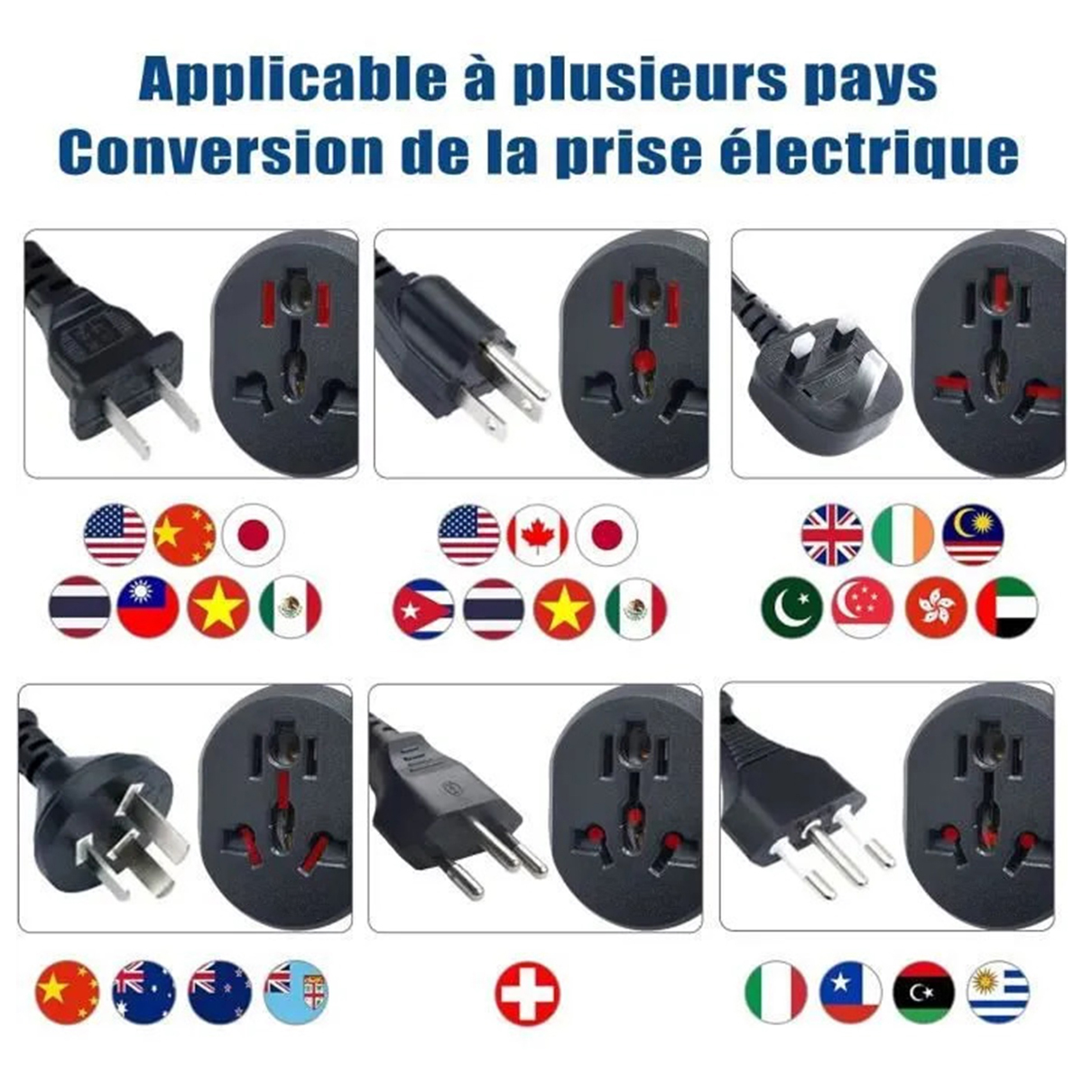 【Adaptation parfaite】la prise de voyage peut être utilisée pour de nombreux appareils électroniques nationaux et étrangers. UK Anglaise Angleterre, USA Americaine, Chine, Australie, Japon, Italie, Suisse Adaptateur de voyage international pour la France - Cette prise d'adaptateur pratique tout-en-1 Monde vers Europe est conçue pour brancher les prises étrangères en France. Il accepte les fiches de plus de 200 pays dotés de fiches US/EU/Australie/UK, tels que la Thaïlande, la Nouvelle-Zélande, Israël, l'Italie, l'Allemagne, l'Espagne, le Canada, la Chine, l'Australie, Hong Kong, l'Argentine, le Pérou, le Japon, le Mexique et la Suisse. 【Prise devoyage portable】 Une prise compacte et peu encombrante. Appareils avec prise de type B Amérique (États-Unis) / Canada / Colombie / Costa Rica / Cuba / Dominicain / Équateur / Guam / Haïti / Japon / Lao / Mexique / Panama / Philippines / Taiwan / Thaïlande et plus encore. Hama Adaptateur de Voyage Universel Monde vers Europe – Type E/F 3 Pôles, Compatible Prises USA, UK, Chine, Suisse, Italie… Idéal pour Appareils Internationaux en France – Blanc Parfait pour brancher : smartphones, rasoirs, , téléphone et plus encore. Idéal pour les appareils les plus puissants tels que les ordinateurs portables ou les sèche-cheveux. Adaptateur Voyage Universel, Adaptateur Prise Universel Avec 2 Usb... Adaptateur International ZVD-Adaptateur De Voyage Adaptateur Universel, Adaptateur Prise Anglaise - Prise France Vers USA Adaptateur Voyage 150 Pays Adaptateur De Prise International Pour Anglaise Europe Americaine Australie 88815875 Prise Multi-standard Australie, Hong Kong, Argentine, Pérou, Japon, etc. Il prend en charge les entrées pour les prises standard suivantes : USA (type A/B), Euro (type C), Australie/Chine (type I), Italie (type L), Royaume-Uni (type G), et Suisse (type J). Adaptateur de prise universel international, 1PC - Test et Avis Appareils avec prise de type A Amérique (États-Unis) / Bolivie / Cambodge / Canada / Chine / Colombie / Costa Rica / Cuba / République dominicaine / Équateur / Guam / Haïti / Japon / Lao / Mexique / Panama / Philippines / Taïwan / Thaïlande / Vietnam et plus encore. Convient aux appareils avec ou sans mise à la terre (2 et 3 broches). Adaptateur Universel vers France FR pour la Connexion d'appareils étrangers, par ex. 【Remarque 】cet adaptateur ne peut convertir que le type de connexion, pas la tension.