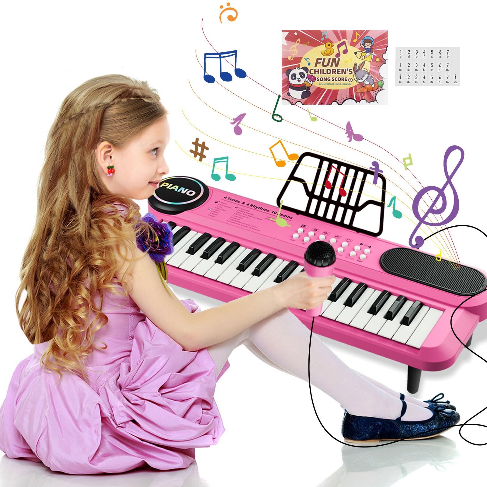 Très approprié pour une utilisation en famille et en voyage. augmenter la confiance des enfants. Ce clavier de piano électrique est un choix idéal pour les enfants, contribuant à créer un environnement musical qui favorise le développement de leur intelligence et leur épanouissement émotionnel 2 en 1 Piano Numérique à 37 Touches Enfants avec Tabouret & Microphone... Ce produit convient aux enfants de plus de 3 ans. Clavier Piano pour Enfants à 37 Touches Portable COSTWAY-Lumière Parce que non seulement les enfants peuvent jouer au clavier avec de la musique, mais vous apprécierez également la musique créative des enfants. En outre, il peut améliorer l'intelligence des enfants, car il peut intégrer de la musique dans le jeu et leur permettre de ressentir le rythme et les battements pendant le jeu. Jouet Enfant 5 Ans Piano Enfants 37 Touches, Multi-Function Musique Clavier, Lectroniq Jouet Enfant 4 Ans Fille ♫【Facile à Utiliser】: Le piano à 37 claviers compact et portable peut être alimenté par batterie (batterie non incluse) et alimentation USB. ♫【Piano à clavier électronique à 37 Touches】Piano enfant comprend 8 types de sons d'instruments de musique, 11 types de musique de démonstration, 8 types de rythmes musicaux, 4 types de sons d'animaux et de percussions, une fonction piano, une fonction d'enregistrement et de lecture. Aidez vos enfants avec la coordination œil-main, la théorie musicale, une bonne motricité et d'autres compétences importantes!