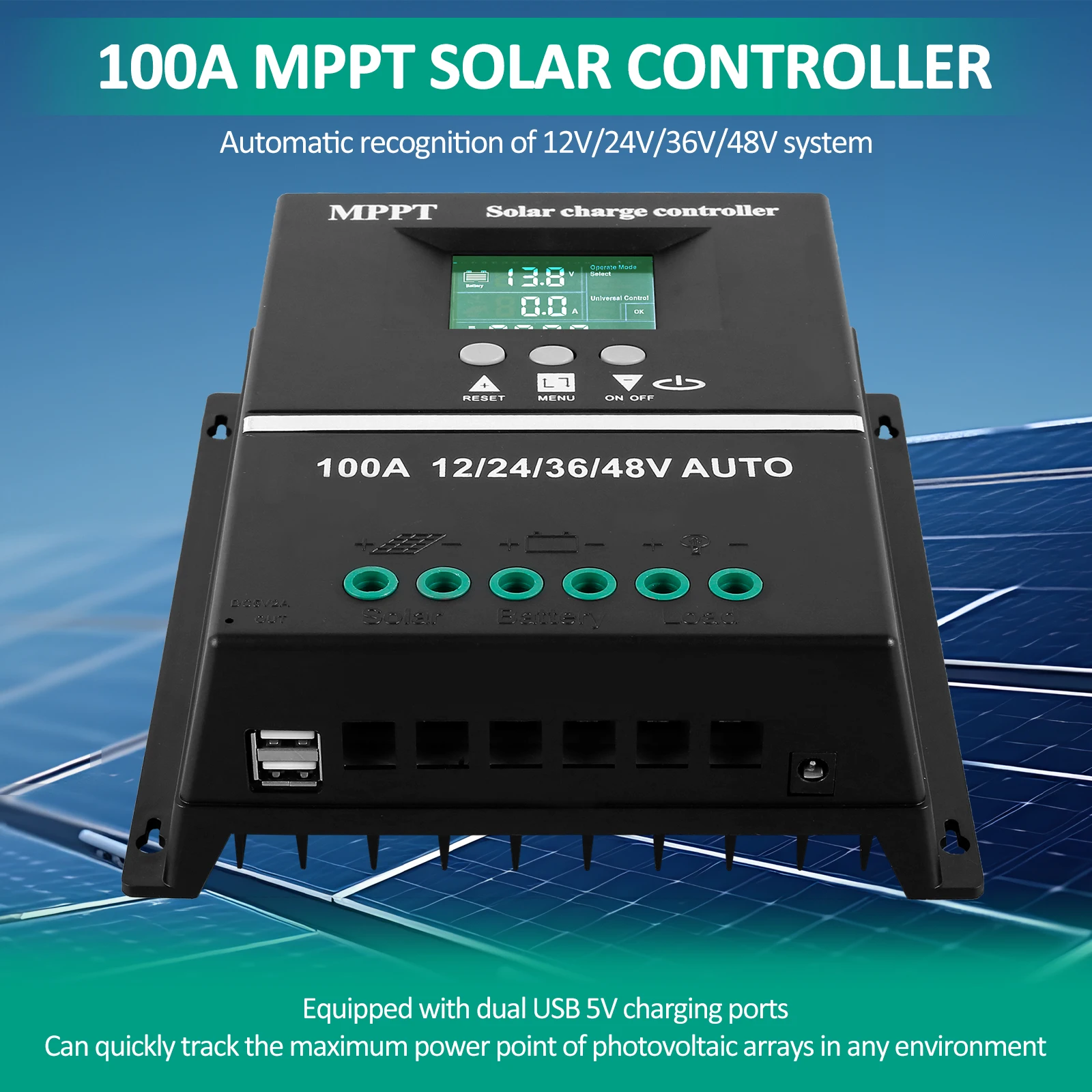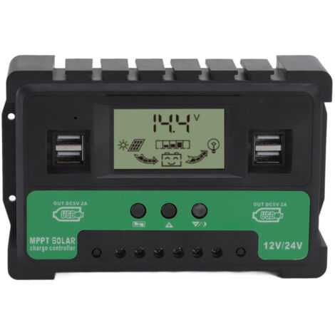 Température de fonctionnement : -25 ℃ ~ 55 ℃. * Port de câblage à grande section : avec des ports de câblage à grande section et à grand espacement, ce contrôleur peut accueillir des fils de 16 mm, une installation efficace et réduire les pertes causées par la chute de courant et de tension. *Remarque : le contrôleur est principalement utilisé pour protéger la batterie. Détection automatique de tension : le contrôleur avancé identifie automatiquement et s'adapte aux systèmes de batterie 12 V/24 V/36 V/48 V, ce qui rend l'installation simple tout en fournissant des paramètres de charge optimaux pour différentes configurations sans configuration manuelle. En outre, il offre plusieurs fonctions de protection contre les surcharges, les surtensions, les basses tensions, les hautes tensions et les inversions de polarité. DeWin Regulateur Panneau Solaire, Controleur de Charge Solaire Grand écran LCD : l'écran LCD clair affiche l'état de la batterie en temps réel, les performances du panneau solaire, le mode de fonctionnement et les informations de sortie de charge, vous permettant de surveiller facilement votre système d'alimentation solaire et de faire les ajustements nécessaires. Plusieurs modes de fonctionnement : choisissez parmi 7 modes de fonctionnement polyvalents, y compris la charge, le contrôle de la lumière, le contrôle de la lumière + le temps de retard, le contrôle général, le contrôle manuel, le contrôle de la synchronisation et le mode test pour personnaliser votre expérience de charge solaire pour diverses applications et environnements. Régulateur solaire MPPT LCD Obtenez le meilleur rendement de votre panneau solaire tout au long... Protection Batterie Panneau Régulateur De Charge Solaire - FOLAYA - MPPT 30 A - Écran LCD - Double USB - 12V/24V Controleur De Charge Bluesolar Caractéristiques : * Nom de la pièce : contrôleur de charge solaire MPPT. * Deux ports de charge USB : équipé de deux ports USB, le contrôleur permet de charger simultanément deux appareils, prenant en charge une variété d'appareils USB tels que les téléphones mobiles, les tablettes et les consoles de jeu. Contrôleur solaire - TMISHION - 12V 24V - Écran LCD - Double sortie USB - 30A - Bricolage * Dissipateur thermique en alliage d'aluminium épaissi : le design du dissipateur thermique à tube MOS assure une dissipation uniforme de la chaleur et un fonctionnement fiable, même dans des environnements à haute température jusqu'à 55 ℃. * Mode de fonctionnement : sept fonctions de protection : anti-surcharge, surtension/sortie CC basse tension, protection haute tension, protection contre l'inversion de polarité. Caractéristiques : * Écran LCD : le contrôleur de charge solaire dispose d'un grand écran LCD, fournissant un état clair de la batterie et du panneau solaire, un contrôle du mode, l'état de sortie de charge et un affichage des paramètres pour une surveillance facile. Système de protection complet : les protections complètes incluent une protection contre les surcharges, la surveillance des surtensions/sous-tensions, et la prévention des inversions de polarité, ainsi que deux ports de charge USB pratiques pour alimenter les appareils mobiles directement à partir de votre système solaire.