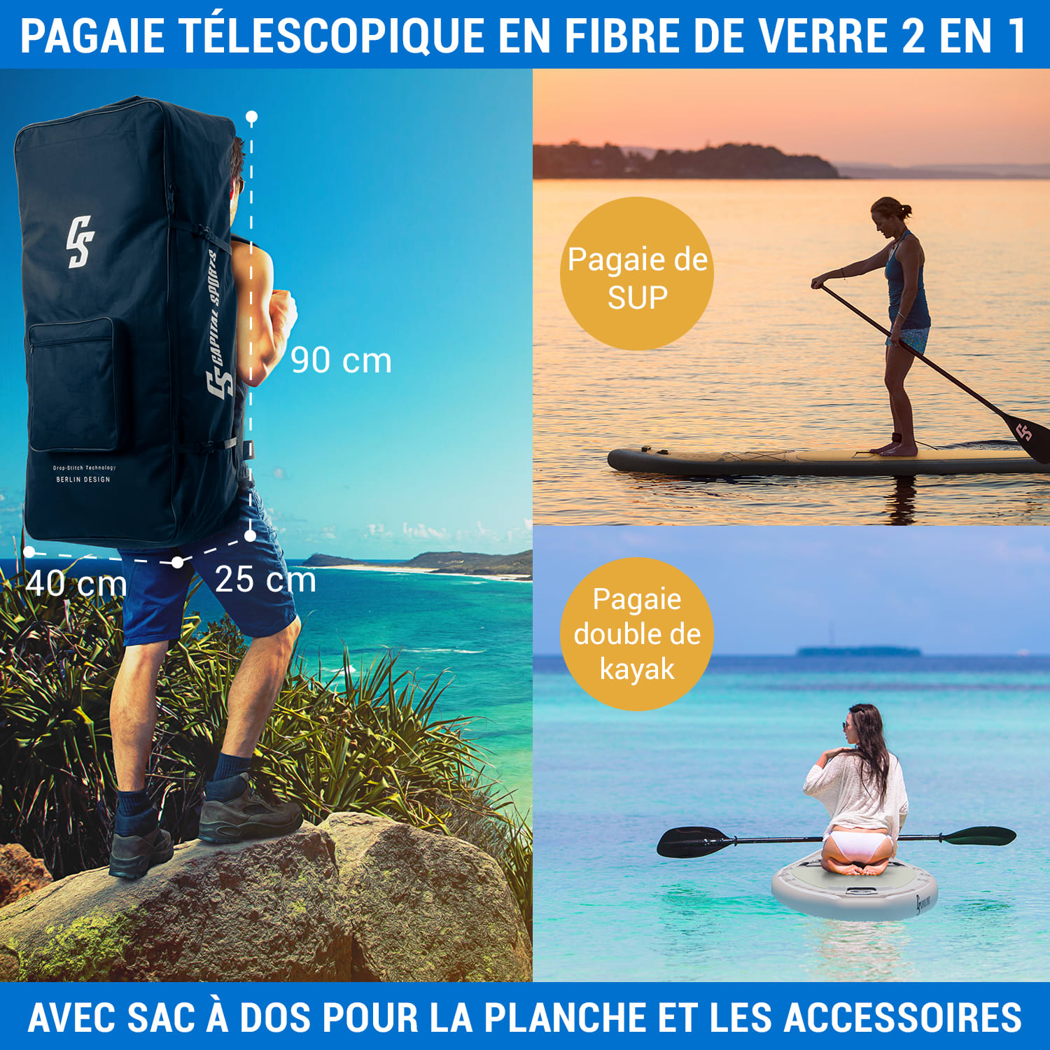 Taille adaptée : transportez votre planche de paddle gonflable sans effort avec notre sac à dos qui convient à la plupart des tailles. Construction robuste : notre sac à dos gonflable Paddle Board est fabriqué en tissu Oxford de haute qualité et conçu pour durer. Sangles de transport pour kayak , SUP, Surf, Windsurf · (86). Livraison en 48h. Sac à dos de transport 128l pour stand up paddles et kayaks gonflables · 8772115 Comment ranger ta planche à pagaie gonflable dans ton sac de transport... Profitez de la possibilité de le porter sur les deux épaules ou sur une avec des bretelles réglables pour un confort personnalisé Accessoire Paddle Gonflable Sac à Dos Transport Planche à Pagaie 80L - Universel, Imperméable - Pour SUP Gonflable Accessoire Planche à Pagaie Espace de rangement amélioré : avec de grandes poches, ce sac à dos gonflable s'ouvre facilement, de sorte que vous pouvez ranger tous vos effets personnels en toute sécurité avec une fermeture éclair, et est assez grand pour accueillir tous vos accessoires Champ d'application : ce sac à dos convient aux planches de paddle gonflables, aux planches de surf et aux planches de stand-up paddle, dispose de compartiments spéciaux et est largement utilisé pour ranger des objets personnels tels que les téléphones portables Sac Résistant Oxford Sac Planche Pagaie Sac à Dos Paddle 80L/105L - Transport Planche Gonflable SUP Surf Rangement Kayak Sport Nautique Sac à Dos Paddle Board Gonflable Sa bonne résistance à la déchirure assure une protection durable de votre équipement, tandis que son design léger assure un transport facile et en fait l'accessoire d'extérieur parfait Avec son design ergonomique et ses compartiments, il est idéal pour ranger des équipements supplémentaires. Dimensions du produit : environ environ 42 x 25 x 92 cm.
