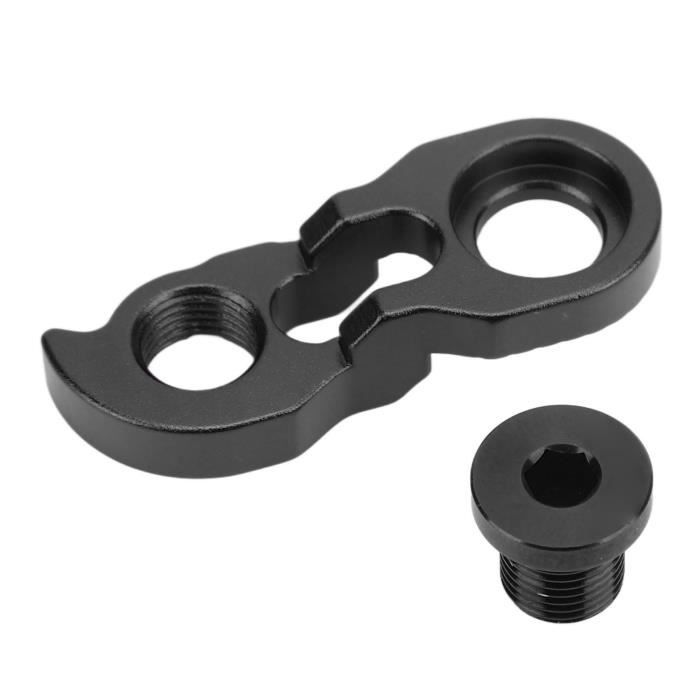 LAFGUR Poulie Vélo de Route Universel Dérailleur de Vélo de Montagne Cadre en Alliage d'Aluminium Crochet de Queue Pièces de Vélo Cintre Dérailleur Arrière Aluminium Pour VTT Cube Accessoire Vélo,Cintre De Dérailleur Pour Venge Spécialisé ViAS Tarmac Pièce Rechange Protecteur Cadre La patère de dérailleur est une pièce sacrificielle conçue pour remplacer un cadre de vélo qui se casse ou se déforme. Caractéristiques : La patère de dérailleur est une pièce sacrificielle conçue pour remplacer un cadre de vélo qui se casse ou se déforme. Le remplacement du cintre est moins cher que de remplacer l'ensemble du cadre, réduisant ainsi les dommages au cadre et aux composants de la transmission. La version longue pour le dérailleur arrière Shimano Direct Mount sur les cadres Cube et Radon avec axe X-12 Caractéristiques : Nom du produit : crochet de queue de vélo., Matériau : aluminium., Couleur : noir. Accessoire vélo,Cintre arrière pour vélo,1 pièce,pour dérailleur... Modèles applicables : VTT, vélos de route et autres modèles à vitesse variable. Ces dommages se produisent généralement lorsque la chaîne est coincée ou que le dérailleur frappe les rayons.