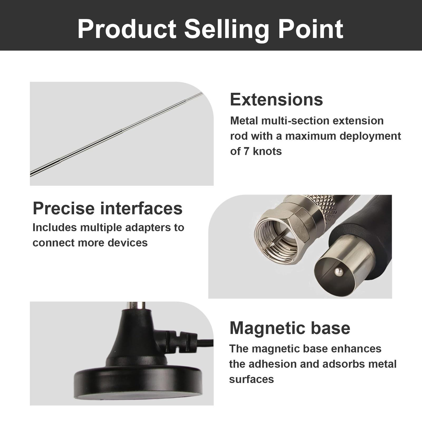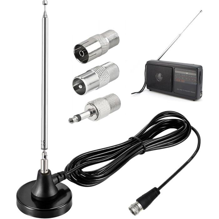 La réception du signal est meilleure lorsqu'elle est placée verticalement sur la surface d'objets métalliques. Vous pouvez profiter de vos stations de radio préférées où que vous soyez, avec un son clair et hi-fi, sans bruit ni interférences, pour une expérience d'écoute parfaite. 【Compatibilité universelle】Compatible avec JVC, Sherwood, Pionier, Panasonic, Onkyo, Bose Indoor Sound Radio Home Stereo Audio Video Receiver. Bingfu Antenne Radio Dab FM Maison Intérieure Télescopique 75CM Base 【Liste de colisage】1 antenne, 3 adaptateurs de prise. Installation Immédiate Sans Outils: Grâce à son système plug and play, cette Antenne Radio FM Dab Intérieur Télescopique peut être installée rapidement sans nécessiter de logiciel ou de pilote additionnel, offrant une solution pratique pour une utilisation instantanée dès la sortie de la boîte Maswell Antenne Radio Dab FM Maison Télescopique Antenne Numérique 79CM Intérieure avec Base Magnétique Câble d'extension de 3 mètres pour Récepteur Stéréo Dab+ Dab FM AV Audio Vidéo Ricevitore Cinéma en destockage Antenne de Toit F Wittenberg Antennen UKW-RINGDIPOL WB 201 R