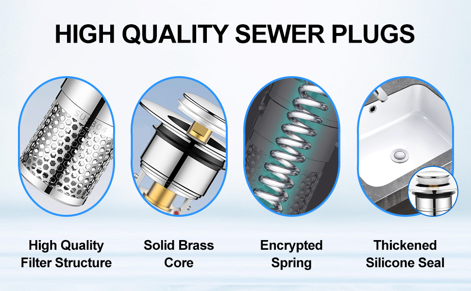 Conception Unique : Ce bouchon filtre pour évier peut être utilisé à la fois comme bouchon et filtre. Contenu de l'emballage]: Vous obtiendrez 2 pièces de bouchon de baignoire. Le diamètre de bonde de lavabo est de 4 cm. La conception en spirale vous permet d'ajuster facilement la hauteur et offre plus de commodité pour votre utilisation Le bouchon de filtre d'évier est fabriqué en acier inoxydable et en laiton de haute qualité. Il suffit de retirer le bouchon d'origine et de le remplacer pour terminer l'installation. Facile à Utiliser : L'installation du bouchon filtre pour évier est très simple. Largement Utilisé : Ce bouchon filtre pour évier s'adapte à divers environnements et est compatible avec divers éviers, baignoires, canalisations et siphons de sol. Le bouchon et le filtre fonctionnent ensemble, garantissant ainsi une évacuation d'eau sans obstruction et sans odeur. Universel Bonde De Lavabo Pop-Up, Bouchon Baignoire Pour Lavabo Cuisine, Couvercle D'Évier En... Il est inoxydable, résistant à la corrosion, très durable, peu encombrant, offre une longue durée de vie et est adapté à une utilisation prolongée. Bonde De Lavabo 2 Pièces, 32-42mm Bouchon Lavabo Universel Pop Up Avec 2 Joints Pour Baignoire Accelere Drainage Sans Colmatage Bouchon 99089169 2 Pièces Bonde De Lavabo Universel Pop Up 34-40mm,Bonde De Lavabo Pop Up 34 40mmbonde De Lavabo Pop Up Avec Filtre Anti Cloggingflitre De Vidange Anti Bloquebouchon Baignoire Pour Lavabo Cuisineflitre Cheveux Orifice De Vidange 86945373 Son design universel s'adapte à presque tous les éviers et est équipé d'un ressort en laiton, durable et incassable. Appuyez simplement sur le couvercle supérieur pour basculer entre les deux modes. Appuyez sur le couvercle supérieur pour stocker l'eau, et ouvrez le couvercle supérieur pour la vidange et la filtration. Le bouchon filtre d'évier est compatible avec divers éviers, baignoires, siphons et siphons de sol. Matériaux De Haute Qualité : Fabriqué en acier inoxydable et en laiton de haute qualité, ce bouchon filtre pour évier est antirouille, résistant à la corrosion, très durable, peu encombrant, offre une longue durée de vie et est adapté à une utilisation à long terme.