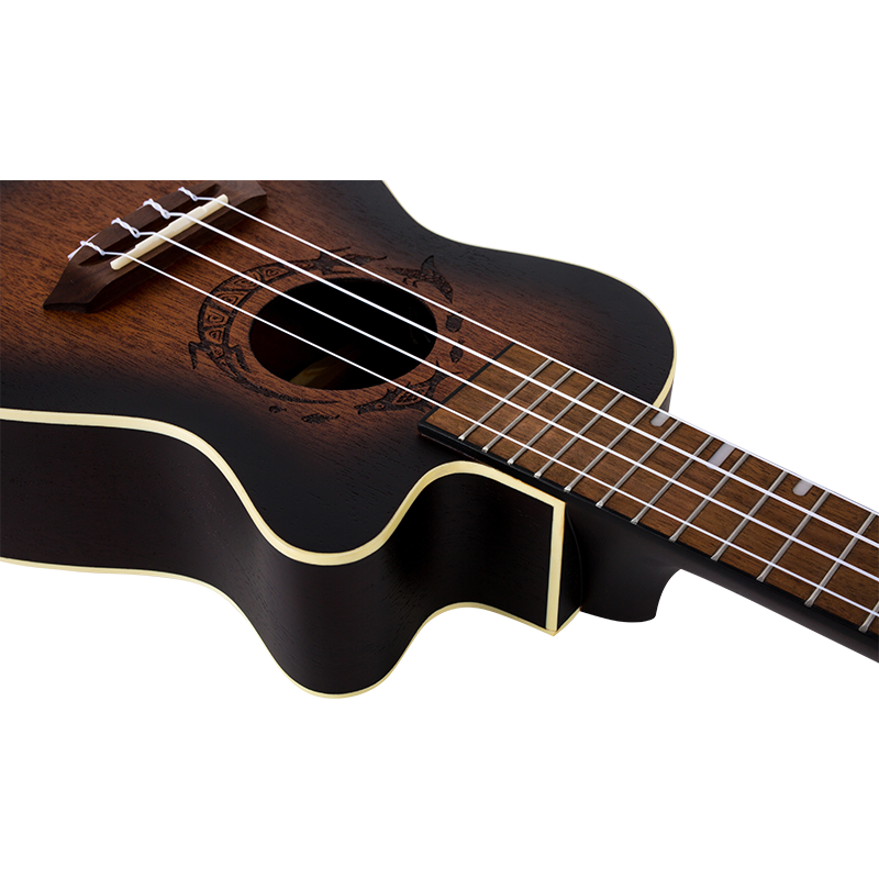Housse incluse – Housse matelassée avec poignée incluse pour transporter le ukulélé ORTEGA RUPR-TRI Ukulélé acoustique Pour compléter le look, nous avons ajouté de vraies ouïes en "f" sur le dessus avec des sillets en os, un binding ABS tortoise et un chevalet mandoline doré Une housse luxe GRATUITE est incluse. Le son est très chaud, résonant et peut être amplifié grâce à son préampli Ortega Magusuke intégré. Ukulélé Concert ORTEGA RUDAWN Ukulélé concert – Le son brillant de ce ukulélé est similaire au son typique d’un ukulélé soprano Une table en érable flambé et bombée sur un ukulélé ? On peut le faire., Et on l’a fait. électro-acoustique étable Flammé Badger Ukulélé Concert Électro-Acoustique Ukulélé électro-acoustique étable Flammé