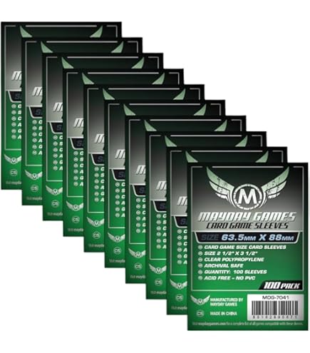 Format Standard 56 × 87 mm : Convient parfaitement aux cartes de format américain (Standard USA Size card sleeve), utilisées dans de nombreux jeux de plateau et de cartes. Polypropylène transparent, sans acide ni PVC MayDay Games - 331672 - Jeu De Cartes - Housse De Protection - Mini USA - 41 X 63 Mm - 100 Pièces 4,5 (748) 520€ Ancien Parfaites pour les joueurs réguliers et les collectionneurs. Fabriquées en polypropylène transparent, sans acide ni PVC, elles préservent la qualité et la couleur de vos cartes tout en assurant un glissement fluide et une manipulation agréable. Protege Carte Jeux Protège-cartes Mayday Games 41x63mm - Lot 50 Pochettes Premium Jeux Société Arkham Horror Pochettes Premium 41x63mm Avertissement De Sûreté Aucun avertissement de sécurité Ce lot économique de 1000 sleeves (10×100) offre une protection fiable contre l’usure, les rayures et les manipulations répétées. Pochettes Polypropylène MayDay Games | Lot De 500 Pochettes Premium MayDay (10 X 50 Pochettes) | Sleeves Cartes 63,5×88 Mm – Protège Cartes Standard, Housse De Protection Lot 1000 Sleeves 56x87mm