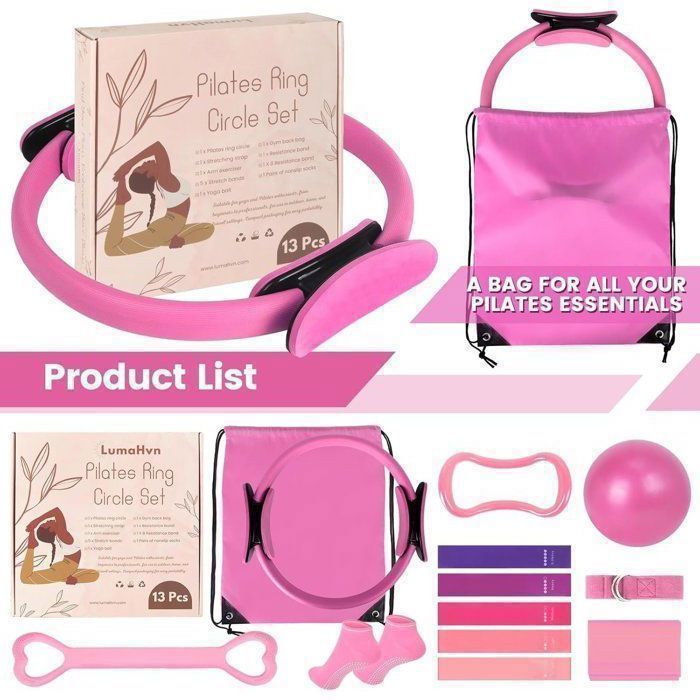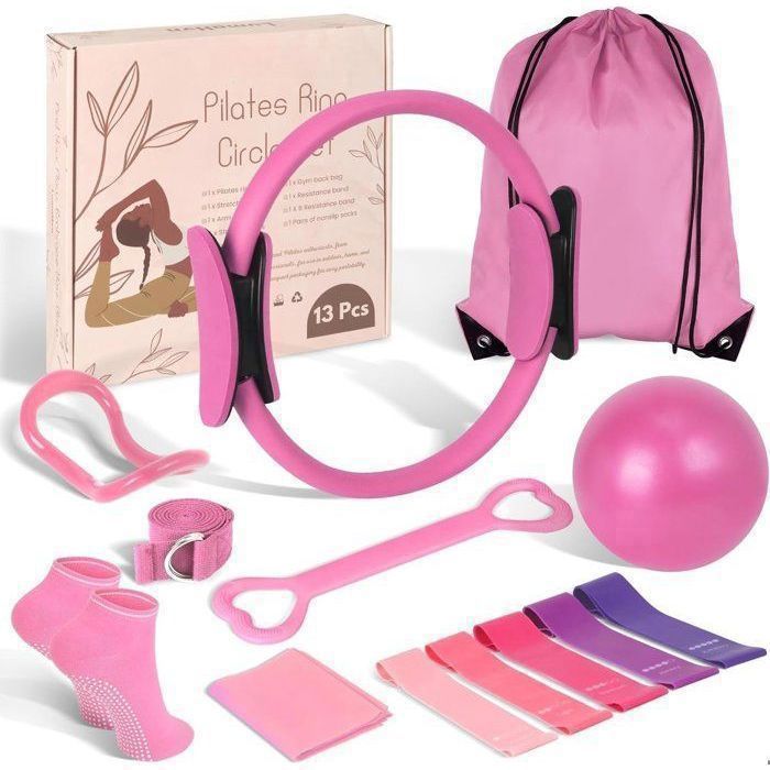 Durabilité Et Prise: L'anneau pilates renforcé de fibre de verre avec surface texturée anti-dérapante et poignées en pp offre une prise confortable, résiste à la déformation et convient à divers niveaux d'intensité. Set Complet: Comprend un anneau pilates, un ballon, 5 bandes de résistance, des chaussettes, une sangle d'étirement et un sac de sport. Design Portable: Set léger se glisse sous les bureaux et dans les valises, parfait pour la maison, le bureau ou les voyages. Kit De Pilates De 13 Peças Training Casa Bandas Mais | Frete grátis Sac compact et ballon gonflable inclus pour un mode de vie actif nomade. Polyvalence : Kit 13 pièces inclut anneau Pilates, ballon yoga, 5 bandes colorées, bande en 8, bande tissu, chaussettes antidérapantes, bande 150 cm, étireur bras, sac Anneau Pilates Ballon Bandes Resistance 13 Pieces Maison Goocrun Ensemble D'anneaux De Pilates Avec Bandes De Résistance, Balle De Pilates, Disques Glissants, équipement D'entraînement à La Maison, Poster De Fitness Complet (violet Kit Pilates Maison Ce Kit Pilates complet 13 pièces est conçu pour transformer votre routine bien-être à la maison, que vous soyez débutant (e) ou confirmé (e). Combinant renforcement musculaire, étirements et posture, il est idéal pour construire une pratique équilibrée sans matériel encombrant