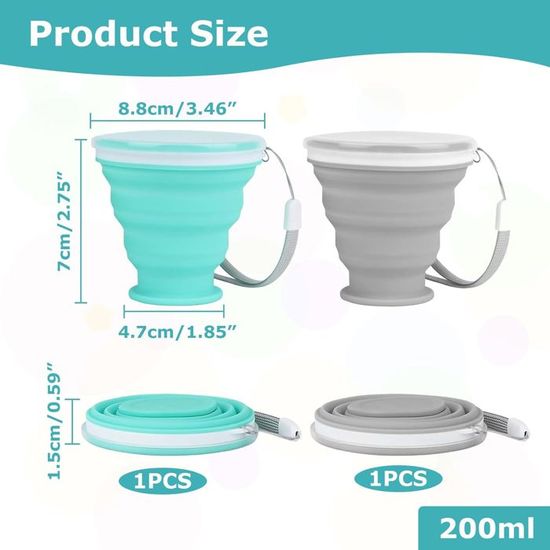 La tasse pliable compacte et portable est une bonne aide pour boire en plein air. [ Haute qualité ] La tasse de voyage pliable est fabriquée en silicone, avec un bord en acier inoxydable et un couvercle de fermeture en plastique. Facile à nettoyer, inodore, anti-taches, durable, flexible et réutilisable Contenu du colis : 2 × Tasse pliable en silicone Gobelet pliable avec couvercle, gobelet en silicone, pliable Plage de température : -50 à 100℃ Grâce à sa conception pliable unique, notre tasse se rétrécit jusqu'à une épaisseur de seulement 1,5 cm une fois pliée, occupant ainsi un minimum d'espace. Il est sans danger pour les humains et les animaux domestiques Il est très approprié pour une utilisation intérieure et extérieure. 【Portable et pratique】Conception pliable, l'épaisseur après pliage n'est que de 1,5 cm, ce qui peut être parfaitement mis dans des sacs, des portefeuilles, des sacs à dos, des valises sans prendre de place. Il est très approprié pour les voyages, le camping, la randonnée, l'alpinisme, les pique-niques, le bureau, le parc, les plages, les fêtes, les événements sportifs, etc. Tasse pliable en silicone 200 ml Il est robuste et durable et peut contenir 270 ml d'eau une fois déplié. Gobelet Pliable DdLUCK Lot De 2 Tasses Pliables En Silicone Sans Tasse Camping Avec Couvercle Gobelet Pliable DdLUCK Lot De 2 Tasses Pliables En Silicone Sans BPA Avec | WhichOne Gobelet Plastique Reutilisable Lot 2 Gobelets Réutilisables Sans BPA Facile à nettoyer, passe au lave-vaisselle. Une tasse d'eau pratique est toujours indispensable pour les voyages en plein air. Cette tasse à eau est facile à transporter et pliable. Un crochet portable peut être accroché à un sac à dos, léger et compact, facile à transporter. 【2 pièces】Contient une tasse pliante blanche et une tasse pliante bleue, chacune d'une capacité de 270 ml.