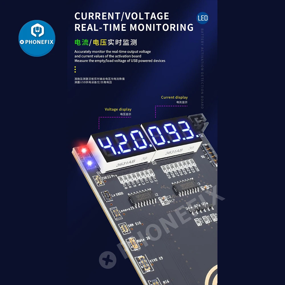 Caractéristiques : Nom du produit : BA27+ Carte de détection d'activation de batterie., Matériau : ABS. 18 PCB pour supports de la série Android., 9 supports pour iPhone. Compteur externe prêt – Comprend un port pour connecter un ampèremètre (câble terminal inclus). Automatisation intelligente : dispose d'une détection automatique de polarité et d'une surveillance de tension/courant, assurant une charge sûre sans risque de surtension. Activation en un clic – pour les piles, appuyez simplement sur un bouton ; pour les batteries Android, et jouez., . BA27+ Carte de détection d'activation de batterie pour séries 6 à 16 et Tension de sortie : 4,2 V-4,5 V (optimisé pour les batteries lithium-ion). Interface : Type-C (charge/sortie à double usage). Activation facile en un clic : activez rapidement les piles en appuyant simplement sur un bouton, simplifiant le processus pour les utilisateurs de tous niveaux de compétence Cadeau Thé Matcha Mécanicien BA27 Panneau De Détection D'activation De La Batterie Pour Iphone 5 13 Pro Max Android Telephone Testeur Batterie Charge rapide - Indicateur LED indiquant l'état ; s'éteint automatiquement lorsque la charge est terminée. Sortie stable de 4,2 V – La tension régulée avec précision garantit une charge sûre et efficace sans risque de surtension. Mécanicien BA27 Panneau de détection d'activation de la batterie pour iPhone 5-13 Pro Max / Android Téléphone Automatisation intelligente – Détection automatique de polarité, surveillance en temps réel de tension/courant, arrêt automatique lorsqu'il est complètement chargé., . Taille : 14 × 78 × 155 mm (compact et léger)., Modèle : BA27+. Caractéristiques : Large compatibilité – Prend en charge les séries iPhone 6-16 et plus de 400 pour les modèles Android, parfait pour raviver les batteries mortes ou inactives. Activation facile en un clic : activez rapidement les piles en appuyant simplement sur un bouton, simplifiant le processus pour les utilisateurs de tous niveaux de compétence.