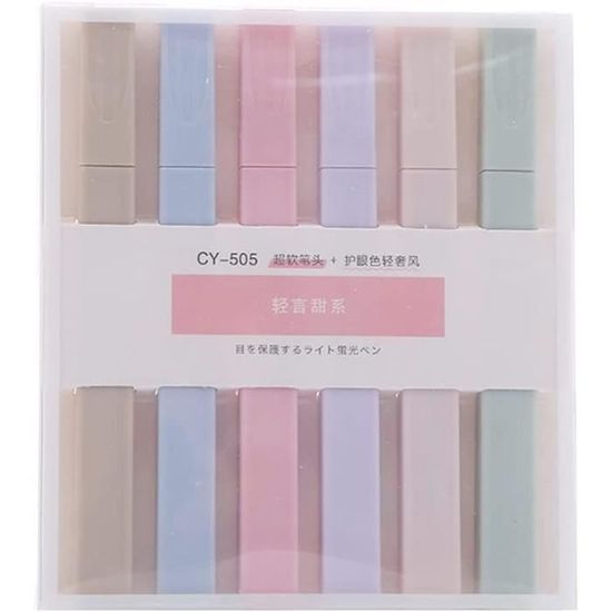 Cela peut être un cadeau créatif pour la famille, les amis, les anniversaires ou Noël. Lot De 6 Surligneurs 2 En 1 - Couleurs Pastel Esthétiques - Marqueurs Ensemble de surligneurs esthétiques : le paquet comprend 6 marqueurs de couleurs différentes. · Écriture lisse 【Conception de couleurs assorties】: Ce surligneur est disponible en 6 couleurs uniques, sans répétition, des couleurs douces et à la mode qui donneront à votre travail un look subtil mais élégant, parfait pour les marqueurs de les jours. Spécification:Matière : plastique + fibreStructure : bouchon à tirerTaille: 13*11., 5cm/ *4., 52inListe colisage:Stylo surligneur * 6 Surligneurs, 24 Stylos Surligneurs Pastel De Couleurs Assorties... 【Protégez les yeux】 : notre marqueur surligneur esthétique conçu pour être composé de six couleurs douces peut bien protéger les yeux pour un soin facile des yeux. La :Ce surligneur est disponible en 6 couleurs uniques, sans répétition, des couleurs douces et à la moqui donneront à votre travail un look subtil mais élé , parfait pour les les jours. Accessoire Bible HANKU Lot De 24 Surligneurs Pastel, Couleurs Pastel, Sans Bavure, Double Face, Pointes Larges Et Fines, Parfaits Pour Les Journaux, Les Planificateurs, Les Notes, Style Japonais Surligneur Bible