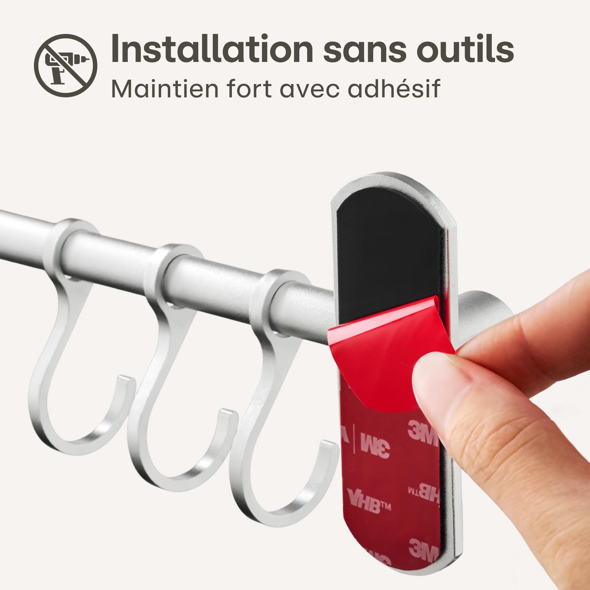 【Matière imperméable】: Fabriquée en aluminium de haute qualité, avec des propriétés anticipées d'humidité, résistantes à la chaleur et à l'épreuve d'huile, adaptées à une utilisation à long terme dans des environnements humides tels que les cuisines et les salles de bains. 【Capacité de chargement forte】: La conception offre une excellente puissance d'adsorption, jusqu'à 20 kg de charge, garantissant que vos ustensiles de cuisine, vos serviettes et autres articles sont sûrs et en toute sécurité sans se soucier de tomber. 【Design flexible】: Le rack de crochets a 8 crochets, qui conviennent au stockage des ustensiles de cuisine, des serviettes, des vêtements et d'autres décorations, et peuvent être ajustés librement en fonction des différents scénarios d'utilisation. Crochet de Rangement de Cuisine T1 Multi Usages, Support Mural Sans Il y a 2 clips de rangement de chiffon, qui peuvent être remplis de serrés, et vous pouvez accrocher des serviettes et des gants. Barre de Crédence Cuisine en Acier INOX avec 6 Crochets Amovible pour Suspendre Les Ustensiles de Cuisine -Cuillère à Soup, Casserole etc. 16,99€. 25,49 Barre Ustensile Cuisine Barre De Cuisine Ustensile Sans Perçage Avec Ventouse 12 Crochets, 20 Barre De Credence Fini les tiroirs encombrés et les ustensiles éparpillés ! Avec une barre de support, vous gagnez de l'espace et vous avez tous vos ustensiles à portée de main