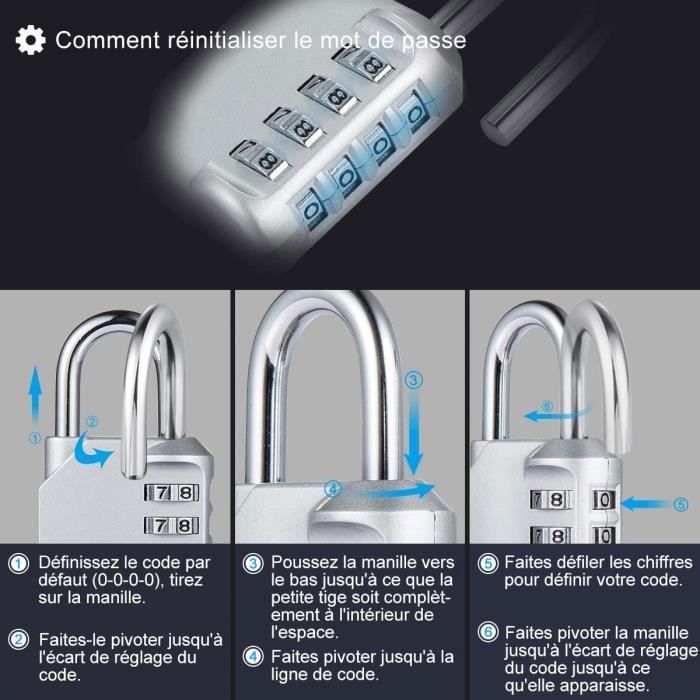 Serrure à bagages YOSOO - Cadenas numérique réinitialisable - Mini 4 Cadenas à Combinaison à Code à 4 Chiffres Pour Salle De Sport, école, Valise De Voyage (bleu Cadenas Valise à Code 3 Chiffres (Bleu) | Accessoire Voyage Cadenas de Voyage à Code à 5 Chiffres - VBESTLIFE - Bleu - Cadenas