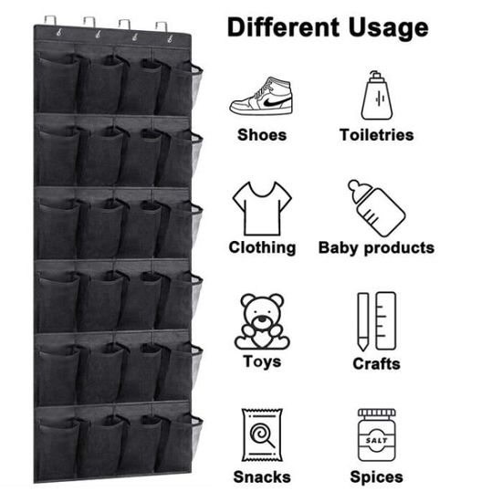 Matériaux de haute qualité: Le corps du sac d'armoire à chaussures suspendu à poches multiples est fabriqué en tissu non tissé de haute qualité, qui offre une bonne respirabilité, un matériau flexible et durable, des performances de charge stables et peut supporter de manière stable le poids des chaussures, vêtements et autres articles Organisateur De Chaussures à Suspendre à La Porte, Avec 24 Grandes Poches En Filet~p183611236 Rangement de Chaussures avec Grandes Poches, Organiseur de Porte Suspendu pour Home Placard Office. 4,6 sur 5 étoiles 14. 3 offres à partir de 10,99 Crochets attachés: Le sac de rangement suspendu multifonctionnel est livré avec quatre crochets, qui ont une forte capacité portante, aucun outil et aucun poinçonnage. Gain de place: L'armoire à chaussures suspendue à la porte peut utiliser pleinement l'espace vertical et peut être facilement accrochée à la barre transversale de l'armoire, derrière la porte ou sur l'étagère du porche. Grande Capacité Rangement Chaussures Porte]Notre rangement suspendu est fabriqué en tissu non tissé et en tissu en maille respirant et écologique, tous les bords sont cousus avec des coutures renforcées pour plus de robustesse et de durabilité Il peut être rapidement mis en service après le déballage, et il est également très pratique d'ajuster la position de suspension Grande capacité: L'armoire à chaussures suspendue adopte une conception de cloison à 24 compartiments, et la taille de chaque compartiment est raisonnablement adaptée, ce qui peut accueillir régulièrement une seule chaussure, éviter efficacement l'extrusion et la déformation de la tige, utiliser pleinement chaque centimètre d'espace et répondre facilement aux besoins quotidiens de stockage des chaussures de la famille, de sorte que le placement des chaussures puisse dire adieu au chaos Range Chaussures Suspendu Range Chaussures U00e0 Suspendre Sur La Porte, Sac De Rangement Suspendu Avec 24 Poches Rangement De Chaussures Suspendu Organiseur De Suspension Multifonction Pour Chambre A Coucher Salle De Bain
