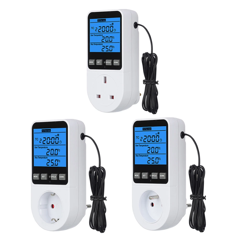 Chauffage De Serre Prise Thermostat Numérique Régulateur De Température 230V 16A Chauffage Et Refroidissement Reptil Thermostat Minuterie Prise Eu Pour Serres Aquariums Recipients En Verre Reptiles 85173051 Prise Hygrostat La Prise Thermostat est équipée d'un écran lumineux et rétroéclairé avec des caractères clairs et bien lisibles. Thermostat et hygromètre SHT2000, régulateur d'... – Grandado Optez pour une prise thermostat régulateur de température numérique. Ce dispositif pratique et facile à utiliser vous permet de programmer la température souhaitée et de la maintenir de manière constante. Grâce à son écran numérique, vous pouvez visualiser et ajuster la température en temps réel 【Prise Thermostat Digitale】Cette Prise Thermostat vous permet de réguler l'humidité et la température dans divers modes de fonctionnement (mode d'humidification, mode de déshumidification, mode chauffage, mode refroidissement). 【Scénario d'application】Avec la Prise Thermostat, vous pouvez régler précisément la température ambiante. Prise de sortie de Thermostat numérique, prise 16A, application Tuya 【Utilisation Facile】La Prise Thermostat est facile à utiliser : il vous suffit de la brancher et de sélectionner le système de chauffage ou de refroidissement que vous souhaitez utiliser. Prise Thermostat Numérique, Régulateur De Température, Prise De Thermostat, Régulateur D'humidité 230V 16A, Thermostat Minuterie pour Serres, Aquariums, Récipients En Verre, Reptiles Caractéristiques : ➤ La Prise De Thermostat numérique offre des fonctions telles que le contrôle du cycle temporel, l'allumage programmé, l'extinction programmée et l'interrupteur temporisé. ➤ La Prise Thermostat est polyvalente et fiable. Spécifications du Régulateur de Température : Nom du produit : Prise Thermostat Matériau : Plastique PC Sortie : Max 16A/230V Dimensions : 440 x 350 x 228 mm Couleur : Blanc Le paquet contient : 1 x Prise Thermostat ➤ La Prise Thermostat convient pour les serres, aquariums, aquacultures, incubateurs, foyers et de nombreux autres endroits. Cette Prise Thermostat dispose de fonctions telles que le contrôle par cycle de temps, l'allumage programmé, l'extinction programmée et le commutateur programmé. 【Contrôle de l'humidité et de la température】Vous pouvez régler les valeurs de démarrage et d'arrêt pour l'humidité/la température afin que vos appareils connectés fonctionnent selon vos besoins. ➤ La Prise Thermostat est facile à utiliser : il suffit de la brancher et de sélectionner le système de chauffage ou de refroidissement souhaité.