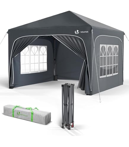 TONNELLES TOUT TEMPS - Ne laissez pas la pluie ou le mauvais temps gâcher votre fête en plein air ! All Seasons Gazebos - Tonnelle Pop-Up 3X3m Entièrement Imperméable - Marine97 - Sport Ce belvédère robuste peut être utilisé sans panneaux latéraux comme cabane de plage ou abri de pique-nique. Avec les tonnelles toutes saisons 3x3m pliante, vous aurez une protection 100% imperméable et un endroit confortable pour vous détendre à l'extérieur sans être exposé au soleil ou aux vents forts ENSEMBLE D'ACCESSOIRES - Ce produit est livré avec 4 sacs pour les pieds, 1 sac de transport à roulettes, 4 x parois latérales, une corde et des piquets de tente ROBUSTE ET DURABLE - Construits à partir de cadres en acier résistant à la rouille et d'une bâche imperméable, nos tonnelles 3x3 peuvent être utilisées à l'intérieur comme à l'extérieur Idéal pour les surfaces gazonnées, sableuses et terrestres avec des sacs de musculation, des piquets et des haubans. All Seasons Gazebos 3x4.5 vollständig wasserdichtes Faltpavillon it 4 Seitenteilen Ne pas utiliser dans des conditions météorologiques défavorables qui pourraient causer des dommages au produit ou à ses utilisateurs. Le cadre en acier thermolaqué s'installe en 2 minutes grâce à 24 supports résistants au vent. Avertissement De Sûreté Pour une utilisation sûre, assurez-vous d'installer correctement la tonnelle et utilisez les piquets de sol fournis. Design élégant et espace de réception généreux Avec ses dimensions généreuses de 2,94 x 2,94 mètres, ce magnifique gazebo au toit classique en pente devient la pièce maîtresse de votre extérieur. Il offre un espace abrité et raffiné, idéal pour organiser des garden-parties, des pique-niques en famille ou simplement pour créer un salon de détente ombragé dans votre jardin... Tonnelle Pliante 3x3 Imperméable All Seasons Gazebos | Tonnelle Pliante 3x2m Avec 4 Parois Latu00e9rales Et Pack D'Accessoires | Matu00e9riaux Robustes, Entiu00e8rement U00c9tanches Et De Haute Qualitu00e9 (Vert Abris De Jardin Vient dans vert couleur.