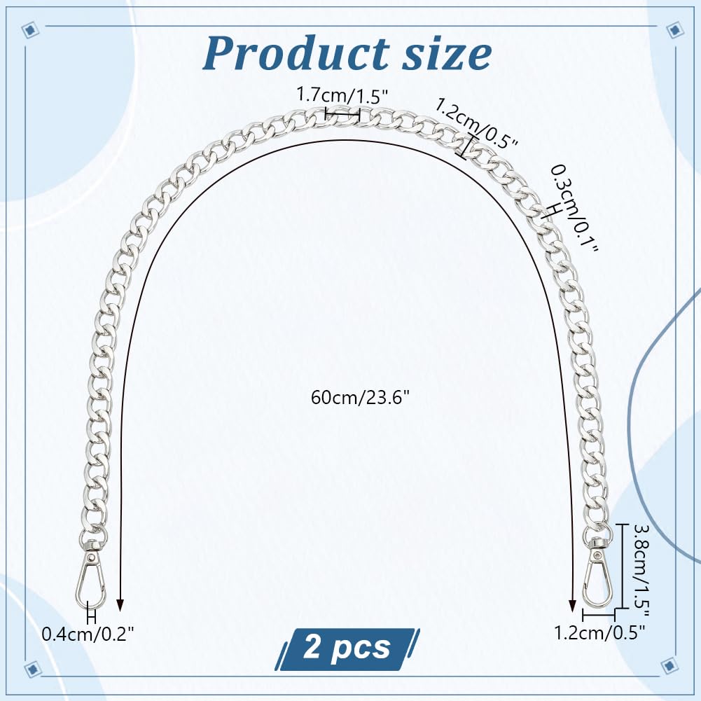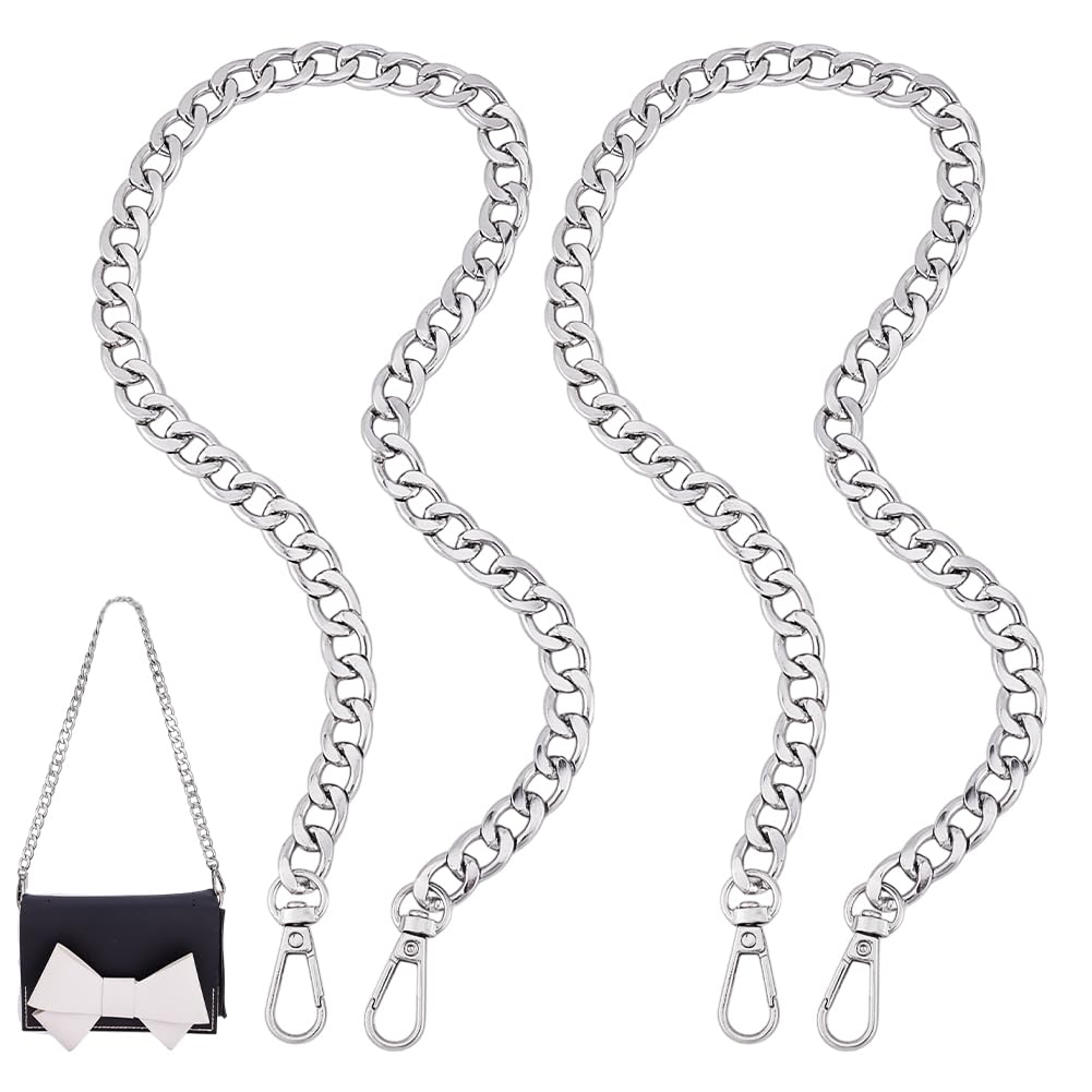 Cela peut également être une chaîne décorative sur vos chaussures, vêtements, chapeaux! Référence du colis : vous recevrez 2 sangle de chaîne de sac à main avec fermoirs pivotants en alliage.. Il fait environ 60 cm/23 pouces de longueur et 11.5 mm/0.6 pouces de largeur; Lien: 16.5x11.5x3 mm, fermoirs: 38x12x4 mm. Taille adaptée à la plupart des sacs à bandoulière ou à bandoulière. Facile à utiliser Référence du colis : vous recevrez 2 sangle de chaîne de sac à main avec fermoirs pivotants en alliage., ., Il fait environ 60 cm/23 pouces de longueur et 11., 5 mm/0., 6 pouces de largeur; Lien: 16., 5x11., 5x3 mm, fermoirs: 38x12x4 mm. Montrez votre bon goût! il peut être utilisé pour remplacer la sangle de votre sac à main, sac à main, sac à main, pochettes, bandoulière, sacs sous les bras, sac à bandoulière et sac hobo ou attachez la sangle appropriée à votre pochette et sacs faits à la main. Chaîne De Sac Métal Argenté PH PandaHall 2pcs Chaînes De Sangle De Sac Noir, Sangle De Sac En Chaine Pour Sac A Main Taille adaptée à la plupart des sacs à bandoulière ou à bandoulière. Il peut être utilisé comme chaîne décorative et chaîne d'extension pour les sacs. Peut également être attaché à votre bouteille d'eau avec un anneau partout où vous allez. Matériau fiable : la chaîne de sac est en aluminium de haute qualité, pas facile à estomper ou à mettez, pas facile à casser et à déformer, haute brillance, surface lisse, belle et durable. PH PandaHall Lot de 1 Brin Chaîne de Sac à Main Sac à Chaîne Apportez plus d'éclat et de glamour à votre sac. Sac à main,Sangle de rechange pour sac à main,30-60-100cm,argent et or...
