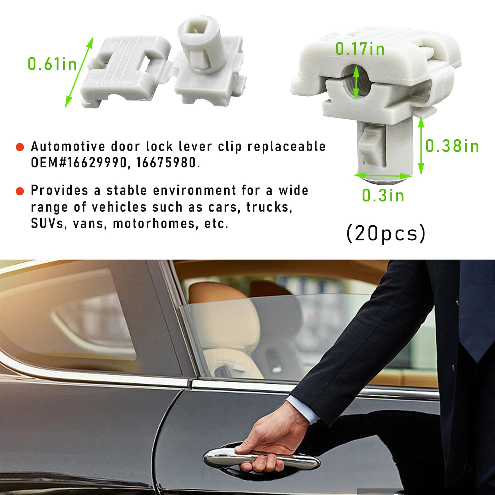 Ils maintiennent la barre de poignée bien en place et l'empêchent de se desserrer ou de se casser, ce qui pourrait ouvrir accidentellement le hayon. Ils maintiennent fermement la barre de poignée afin d'éviter qu'elle ne se desserre ou ne se brise et que le hayon ne s'ouvre accidentellement. - Comprend 10 clips, une quantité suffisante pour votre utilisation quotidienne et le remplacement, prêt à remplacer les clips de retenue de la barre de verrouillage du hayon vieux ou endommagés. La taille des deux couleurs est de 7,11*8,89*22,098*12,446mm. Convient à vos déplacements quotidiens. Clips De Verrouillage Porte Voiture Clips De Tige De Verrouillage De Porte De Voiture En Plastique Et Nylon, 24 Pièces, Attaches De Poussoir, Kit De Clips De Tige De Poignée De Hayon Automobile, Pièces De Voiture Pièce Auto Hayon SUV Compact, facile à utiliser, simple à installer, fixation et installation rapides et permanentes sans modification. 【Le Paquet Comprend】: Ce clip de barre de poignée de hayon comprend 10 clips, ce qui est suffisant pour répondre à vos besoins de remplacement. Kit de clips pour conducteur gauche et droit pour la fixation du hayon côté passager. Fournit un environnement stable pour les voitures, les SUV, les véhicules de loisirs et la plupart des autres véhicules. Dilwe tige de valve en caoutchouc Lot de 100 tiges de valve de pneu de... - Permet de s'assurer que le hayon est bien fermé. 【Haute Performance】: Ces clips de barre de poignée de hayon sont fabriqués à partir de matériaux de haute qualité et d'une fabrication soignée, ils permettent de s'assurer que votre hayon est bien fermé. 【Largement Utilisé】: Le clip peut être utilisé comme clip de levier de verrouillage de la poignée du hayon, clip de verrouillage du hayon, clip de retenue du verrouillage du hayon, clip de levier de verrouillage de la porte et clip de panneau de porte. - Large gamme d'applications, le clip peut être utilisé comme clip de barre de verrouillage de la poignée du hayon, clip de verrouillage du hayon, clip de retenue de la serrure du hayon, clip de barre de verrouillage de la porte et clip de panneau de porte. Ce clip de retenue est une fixation fiable et sécurisée pour levier de porte de voiture, garantissant une fixation serrée et sécurisée. -Accessoire conçu spécifiquement pour les propriétaires de véhicules, ce clip de porte assure la sécurité et la poignée du véhicule Clips de tige de verrouillage de porte mixtes pour poignée de 【Installation Facile】: Ce clip de poignée de hayon n'est pas seulement bien fabriqué et de bonne qualité, il est aussi très facile à installer.