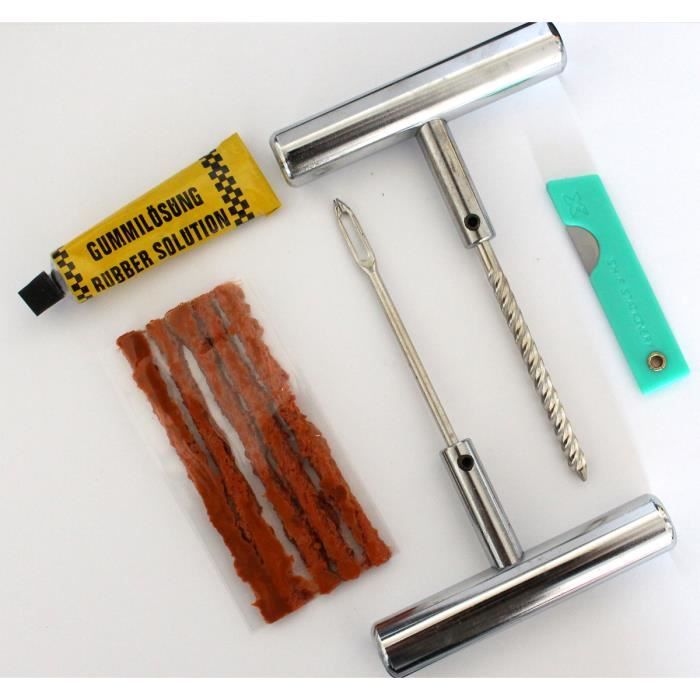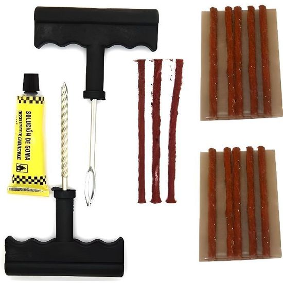 Mèches Réparation Pneu Crevaison 50 Pieces SWANEW Kit Réparation Pneu 73PCS Rouge, Mèche Pneu Crevaison, Pour Les Pneu Universels Bleu 52299339 Meche Pneu Ce kit vous permet de gagner du temps et d’éviter les coûts élevés d’un service de dépannage. Le kit contient 50 mèches, de quoi réparer de nombreuses crevaisons. C'est l'accessoire indispensable à glisser dans son coffre ou sa sacoche de moto pour... Kit de réparation crevaison : comparez mèches et bombe anti-crevaison pour choisir la solution rapide et efficace adaptée à vos besoins Leur conception assure une résistance exceptionnelle à la pression, à la chaleur et aux variations de température, garantissant des réparations fiables à long terme. Le format compact du lot le rend facile à ranger dans la voiture, le garage ou la boîte à outils, prêt pour toute situation imprévue. Générique Kit Reparation Pneu, mèches Pneu crevaison pour Ces mèches de réparation sont conçues pour être insérées facilement à l’aide d’un outil standard de type alésoir et poinçon. (note: vous devez déterminer la bande froide à travers les pneus, après le remplissage pour éviter de glisser., 6., Convient à tous les pneus en caoutchouc de style., 7., Remarque: vous devez déterminer la bande froide à travers les pneus, après le remplissage pour éviter de glisser. Chaque mèche s’insère facilement dans le trou pour assurer une étanchéité solide et durable. Elles s’adaptent parfaitement à la surface interne du pneu, assurant une étanchéité complète et durable. Idéal pour les urgences sur la route ou les petits travaux d’entretien à domicile, il vous aide à reprendre la route en toute sécurité en quelques minutes seulement. 【Utilisation simple】 Aucune compétence mécanique avancée n’est requise ! Polyvalent et pratique, il constitue une solution d’urgence indispensable pour tout conducteur, qu’il s’agisse d’un usage domestique, professionnel ou en déplacement. Le forfait comprend: Chaîne de réparation de pneu de 50 pièces