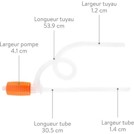 Équipée d'une boule en verre de qualité industrielle et d'un ressort en acier inoxydable, elle offre une performance fiable pour le transfert de divers liquides. Avec une longueur de 6 pieds, ce siphon de sécurité permet un transfert rapide et efficace de liquides à une vitesse impressionnante de 6 gallons par minute. Pour un fonctionnement optimal, assurez-vous que le liquide à transférer est placé plus haut que le récipient de réception. Sa conception polyvalente le rend indispensable pour les amateurs de bricolage et les professionnels. Que vous soyez un amateur de bricolage ou un professionnel, vous apprécierez sa capacité à transférer facilement et rapidement divers liquides. Pompe Siphon Manuelle pour Essence, Carburant ou Eau pour Pompage et Matériaux de Qualité Supérieure : Conçu à partir de tubes 100% vierges, ce siphon est jugé excellent pour le transfert de carburant . Sa construction robuste assure une résistance aux produits chimiques et une longue durée de vie. Siphon à gaz de 6 pieds, pompe, Shaker, Siphon, Valve vierge de 1/2 pouces pour le transfert de carburant à essence, tuyau de pompe auto-amorçante polyvalent et... Pompe Manuelle Eau Oumuik Tuyau Siphon Pompe Pour Gaz/Essence/Carburant Eau Auto-amorçante Débit 6 Gallons Par Minute Pompe en Cuivre Pure et Durable : Fabriquée en cuivre sans plomb, cette pompe à siphon garantit une utilisation sûre et durable. Fabriqué à partir de matériaux de qualité supérieure, ce siphon utilise des tubes 100% vierges, reconnus pour leur excellence dans le transfert de carburant. Un tuyau de pompe pratique facilite le transport de divers liquides. Grâce à une valve en cuivre, un tuyau transparent en PVC peut aspirer de l'eau, du carburant et du dioxyde de carbone en le secouant. En raison de la pression négative, le liquide s'écoule automatiquement du Sommet La polyvalence de ce tuyau de siphon en fait un outil indispensable pour de nombreuses applications. Siphon de Sécurité de 6 Pieds : Avec une longueur de 6 pieds, ce tuyau de siphon permet un transfert efficace de liquides à une vitesse de 6 gallons par minute. Conçu pour répondre aux besoins des utilisateurs exigeants, ce siphon se distingue par sa construction en cuivre pur sans plomb, garantissant une utilisation sûre et respectueuse de l'environnement. Facilité d'Utilisation : Fonctionnant par simple agitation de haut en bas, ce tuyau de siphon est facile à utiliser sans nécessiter de compétences techniques.
