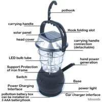 Caractéristiques : Caractéristiques : 1., Protection de l'environnement : alimentation auto-génératrice à manivelle pouvant également être utilisée pour le chargement par la lumière du soleil, sans batteries externes, stockage d'énergie des batteries rechargeables; vert, respectueux de l'environnement., 2., Trois modes : appuyez une fois, 12 perles s'allument, appuyez sur la seconde, 24 perles s'allument, appuyez sur la troisième, 36 perles s'allument 3., Mini dynamo en cas d'urgence. Lanterne Solaire, Dynamo à Manivelle 36 Led Lanterne de Camping Lumière de Secours Cette lanterne LED solaire ultra lumineuse est idéale pour le camping, la lecture, la pêche, les réparations automobiles et d'autres activités de plein air Il peut également être utilisé pour la lecture et la réparation, empêche les pannes de courant, etc., 5., Si vous avez des questions, n'hésitez pas à nous contacter Remarque : 1., La couleur réelle peut être légèrement différente de l'image en raison des différents effets de lumière. Temps de décharge : 8 heures. Il peut également être utilisé pour la lecture et la réparation, empêche l'alimentation , 5., Si vous avez des questions, n'hésitez pas à nous contacter <br/> Lampe D'urgence LED Rechargeable Lanterne De Camping Solaire à LED Avec Dynamo [ Urban Survival Lampe De Randonnée étanche Les mesures étant prises à la main, les tailles indiquées peuvent varier de 1 à 3 cm. Dimensions : 105 x 105 x 245 mm. Contenu : 1 lanterne solaire à manivelle de camping, 1., Protection de l'environnement : alimentation auto-génératrice à manivelle pouvant également être utilisée pour le chargement par la lumière du soleil, sans batteries externes, stockage d'énergie des batteries rechargeables; vert, respectueux de l'environnement., <br/> , 2., Trois modes : appuyez une fois, 12 perles s'allument, appuyez sur la seconde, 24 perles s'allument, appuyez sur la troisième, 36 perles s'allument <br/> , 3., Mini dynamo en cas d'urgence. Temps de charge : panneau solaire : 8 heures. Lampe Torche LED portable à énergie solaire avec Manivelle Dynamo et Insertion des caractères : 4 heures. Lampe Torche Solaire Rechargeable(Lot de 2), LED Lampe Urgence à Dynamo Manivelle Flashlight avec Mousqueton pour Randonnée Voyage Camping Escalade. Vendu...