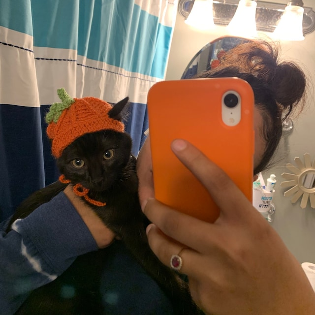 Outil de prise de photos : mettre ce chapeau sur votre chat peut instantanément rendre la prise de photos de vacances à partager sur les plateformes sociales ou rendre les souvenirs de famille plus intéressants. Matériau de haute qualité : fabriqué dans un matériau doux et confortable de haute qualité, il a un toucher doux et n'irrite pas la peau du chat, offrant au chat une expérience de port confortable. Taille appropriée : convient à la plupart des formes de tête de chat, la conception légère n'alourdira pas le chat et n'affectera pas les activités quotidiennes du chat. chapeau de citrouille d'halloween pour chiens et chats de taille moyenne - accessoire de costume en polyester confortable avec trous pour les oreilles, fermeture à ruban magique ajustable – accessoires animaux Chapeau pour chat d'Halloween, chapeau citrouille pour chat Design unique : Cet adorable chapeau pour chat sur le thème de la citrouille ajoute une touche festive et fera de votre animal la star d'Halloween Tenue d'Halloween parfaite : cet ensemble de 3 costumes d'Halloween pour chat comprend d'adorables chapeaux de citrouille combinés avec un nœud papillon chic et un bavoir en maille respirante, faisant de vos animaux de compagnie la star de toute fête ou événement d'Halloween..Le design festif garantit à vos chats et chiens un look mignon... Costume de Citrouille, 3 pièces/Ensemble de Costumes d