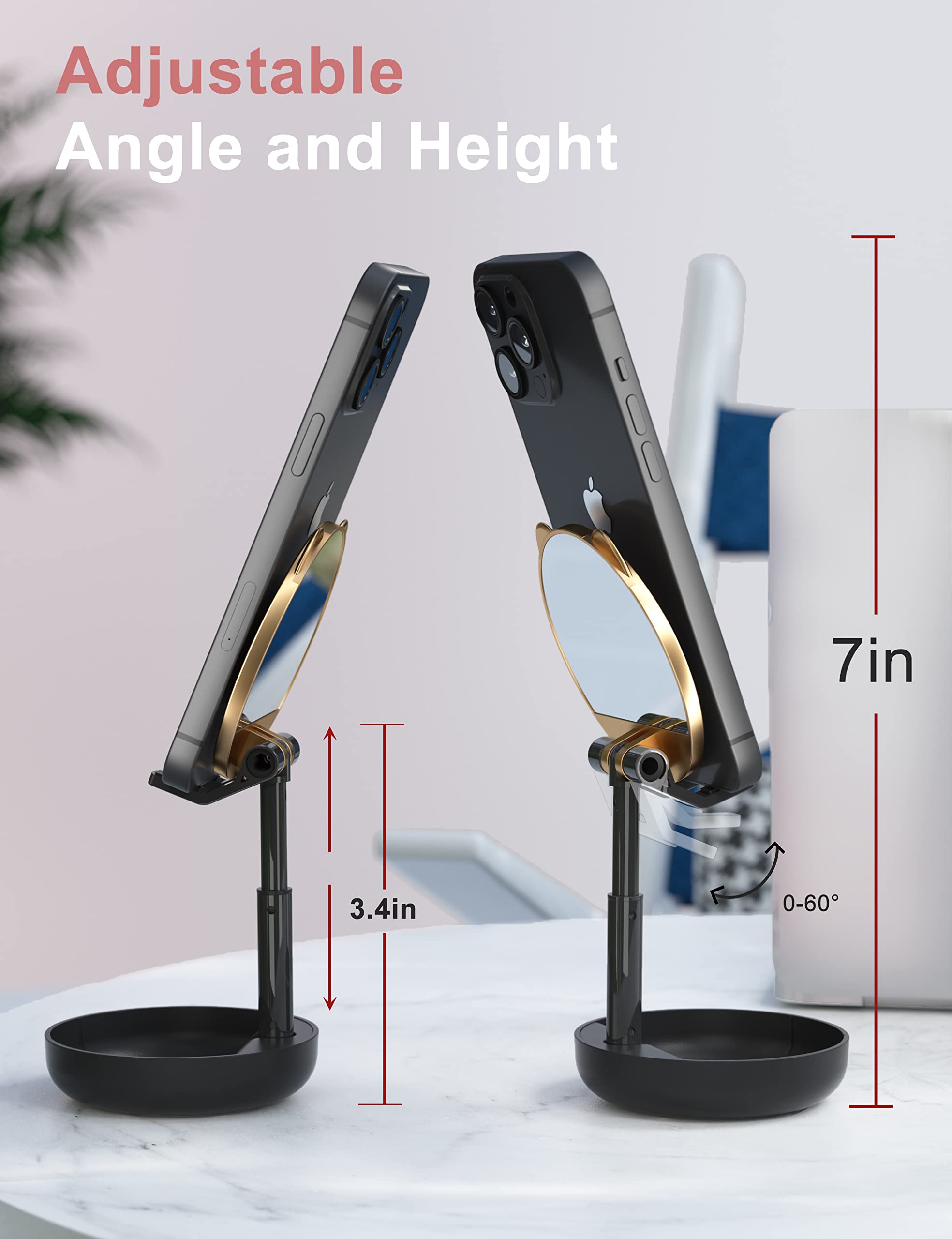 Accessoire Bureau Téléphone Stable Support De Bureau Pour Téléphone Portable - Noir Cuisine Accessoires 【Petit miroir】: Le miroir à l'arrière peut être utilisé pour mettre un beau maquillage, et d'autres utilisations vous attendent. Vous pouvez le glisser dans votre poche de sac ou votre tiroir de bureau, que vous voyagez, travaillez au bureau ou que vous profitiez de vos loisirs à la maison Il peut supporter de manière stable le poids du téléphone portable et la hauteur peut être ajustée. Et le châssis peut également aider à ranger des bijoux relativement petits Un effet légèrement agrandi est créé. 【Design unique】: Design breveté élégant, beau, portable et unique, offre une meilleure expérience d'utilisation. Support de téléphone portable pliable avec miroir et support de téléphone portable, design 【Réglage multi-angle et multi-hauteur】: Angle de rotation de 180 ° et réglage de la hauteur de 2,5 cm pour répondre à votre angle le plus idéal et le plus confortable. Forte stabilité du châssis : Il peut supporter de manière stable le poids du téléphone portable et la hauteur peut être ajustée. Répondez aux questions Q1 : ce support de téléphone portable est-il stable pour un grand téléphone ? Réponse : oui. Q2 : ce support de téléphone peut-il également être utilisé comme miroir de beauté ? Réponse : Oui, mais un miroir convient mieux pour agrandir les détails du visage. Ce support de support de téléphone peut prendre en charge tous les téléphones portables, mais peut ne pas convenir aux appareils de plus de 10 pouces. 【Design portable】: Pratique à mettre dans le sac, très léger, il n'a que la taille d'une paume une fois plié, ne prend pas de place et peut être facilement retiré pour une utilisation à tout moment, n'importe où. Et il peut être facilement plié, pratique à transporter. Facile à plier : Petit et exquis, facile à transporter.