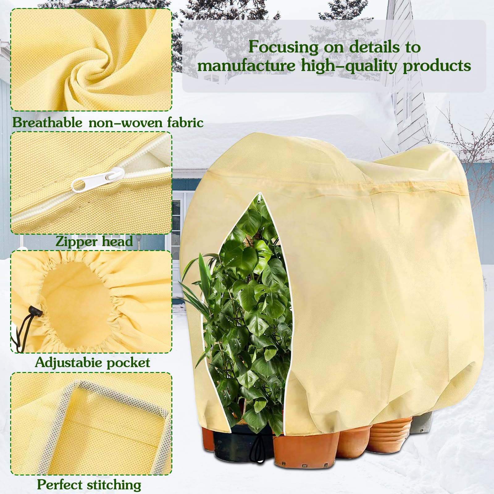 Le cordon de serrage prolongé et durable se resserre instantanément, emprisonnant la chaleur de manière sécurisée et s'adaptant parfaitement à différentes formes de pots. Matériaux de haute qualité : Voile hivernage plante utilise un tissu non tissé avec une structure semblable à celle du coton et du lin, dont les fibres denses bloquent efficacement l'intrusion d'air froid et maintiennent la température du sol. Tente d'hiver pour plantes : Dimensions : 120 x 180 cm. La grande tente résistante au gel pour plantes convient à la plupart des arbres en croissance ou à plusieurs plantes en pot Véritable barrière contre le froid, son épaisse toile en polypropylène non tissé 80 g/m² assure une protection optimale. Son cordon de serrage et son astucieuse fermeture par zip en font un produit facile et rapide à installer, tout en assurant un bon maintien pendant toute la durée d'utilisation Réutilisable : Toutes les coutures de l'housse hivernage plante exterieur sont renforcées par un collage adhésif double couche, garantissant la durabilité et empêchant l'effilochage. GEOTEXTILE - BACHE ID MARKET - Housse d hivernage pour plante et Lorsque l'hiver reviendra, il sera à nouveau prêt à protéger vos plantes vertes préférées Application polyvalente : Sac hivernage plante exterieur convient non seulement à la protection tout au long de l'année des arbres, des plantes en pot, des arbustes et des grandes plantes vertes d'extérieur, mais peut également être utilisé comme housse anti-poussière et anti-humidité pour les meubles de jardin et les articles d'intérieur. Protection Arbre Froid Azyvum Voile Hivernage Plante Exterieur,Housses De Protection Pour Plantes Avec Cordon De Serrage Et Zipper, Réutilisable Housse Hivernage Plante, Protection Des Plantes,120 X 180cm Protection Arbre Hiver Toile Facile à utiliser : L'housses de protection pour plantes est doté d'une fermeture éclair et d'un cordon de serrage prolongé, ce qui évite d'avoir à se débattre avec l'ajustement du pot. Liste de contenu : Vous recevrez 1 pièce de voile d hivernage épais de haute qualité de couleur jaune, chacune étant entièrement équipée d'une fermeture éclair et d'un cordon de serrage prolongé. Ses dimensions sont de 120 x 180 cm/47., 24 x 70., 86 in, prêt à l'emploi dès sa sortie de l'emballage, répondant facilement à vos besoins de protection complète pour les grandes plantes en pot et les arbres