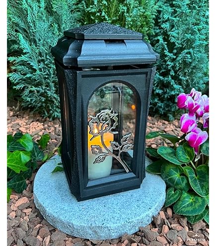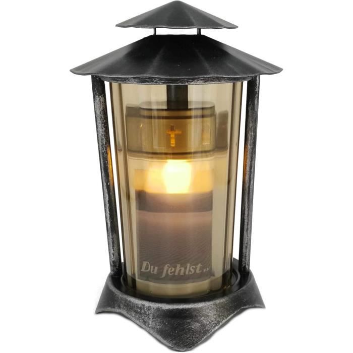 bougie cimetiere et lanterne funeraire Quantité : 1 lanterne avec bougie. Lanterne Résistante Intempéries Bougie Incluse TRIROCKS Lanterne Commémorative De 28,5 Cm De Haut Marche à Côté De Nous Lanterne Du Souvenir Décoration Tombe Fleurs Calla Cette charmante lampe funéraire avec un motif floral est un ajout adorable à tout monument. Veuillez noter que la livraison est effectuée sans socle ni matériel de décoration. Convient pour les bougies funéraires en parafine, à huile ou L, E, D (bougies à parafine, à huile de max., 10 cm de hauteur) , Couleur : argenté Couleur : blanc - doré Matériau : plastique dur de haute qualité (acrylique), vitres en verre véritable Dimensions : hauteur 27 cm, largeur 16 cm, Poids de l... Lanterne Funéraire Avec Pile Bougie D'Anniversaire - Doré - Pour La Maison - À Monter Soi-Même Détails du produit : produit : lampe funéraire avec fleurs calla Couleur : effet argenté Matériau : plastique et verre Dimensions : hauteur 27,5 cm, largeur 12 cm Poids : env., 0,6 kg. Il est adapté pour les lanternes funéraires en paraffine, à l'huile ou à LED jusqu'à 10 cm de haut. Le design délicat en argent reflète soigneusement la lumière de la bougie fournie et crée une atmosphère apaisante.