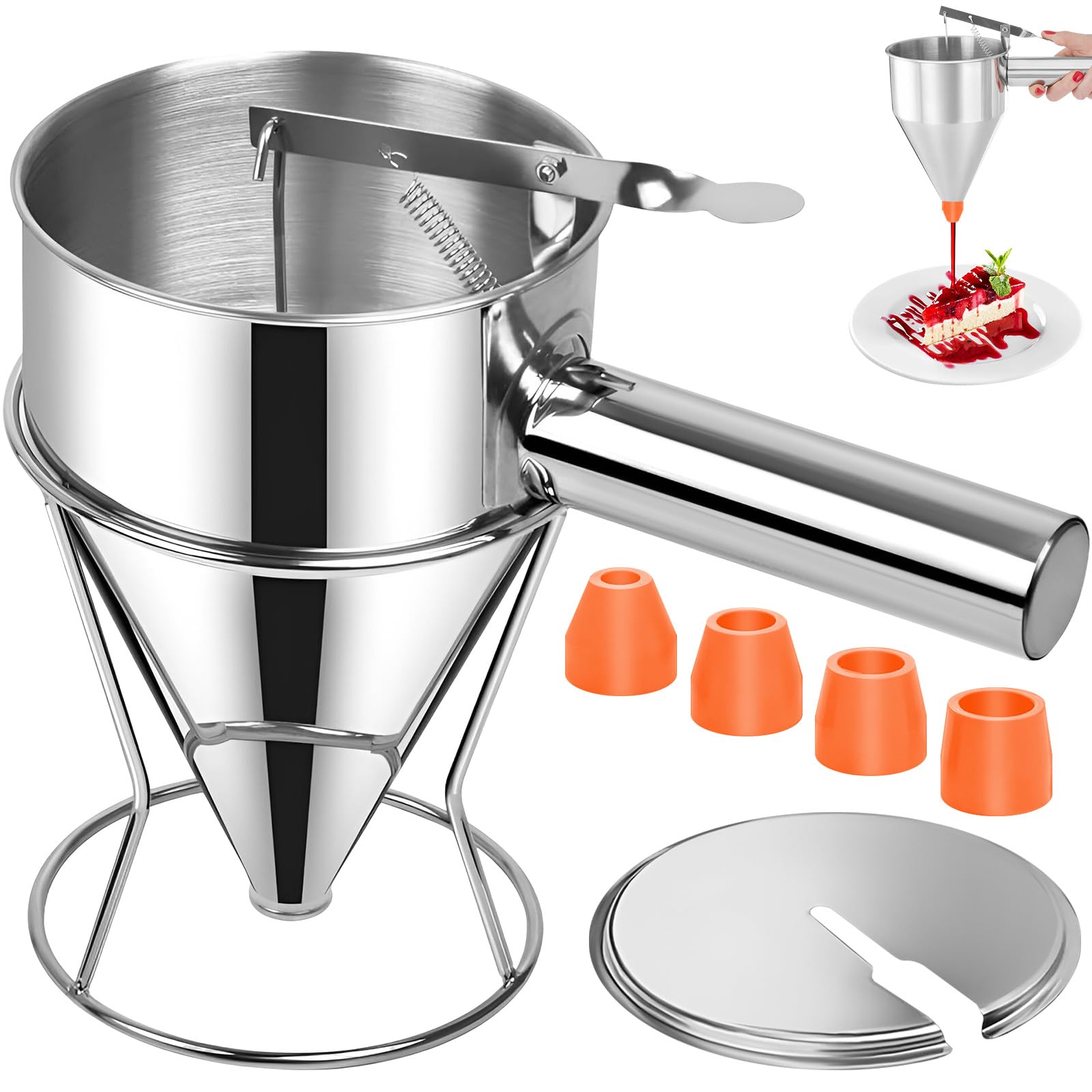 La brosse à huile résistante à la chaleur est parfaite pour graisser votre poêle avant d'ajouter de la pâte, tandis que la spatule et le fouet vous aident à créer la consistance parfaite de la pâte. Rösle - Spatule à crêpes en silicone et acier inox Fabriqué en acier inoxydable de qualité supérieure, il est durable, résistant aux chutes et passe au lave-vaisselle. Facile à utiliser : alignez l'arc concave de la poignée avec l'interface et poussez vers le haut pour installer la poignée. Le distributeur lui-même a un bec de 1,9 cm. Appuyez sur le levier avec votre pouce pour un contrôle pratique du liquide, vous permettant de distribuer facilement la plupart des pâtes et sauces. Distributeur de crêpes multifonction : idéal pour créer des crêpes parfaites, des entonnoirs et même comme entonnoir pour verser la cire pour les bougies. Go Pâtisserie | Matériels et Accessoires Pâtisserie et Décoration Gâteaux Tunisie Accessoire de cuisine essentiel : ce kit de gâteau entonnoir comprend un pinceau à huile en silicone, une spatule et un fouet manuel à blanc d'œuf. Le pinceau à huile en silicone, la spatule et le fouet manuel à blanc d'œuf sont des accessoires essentiels pour créer la pâte idéale. Acier inoxydable de qualité supérieure : fabriqué en acier inoxydable de haute qualité, cet entonnoir à gâteau est durable et résistant aux chutes. 7 likes, 0 comments - cfm38 on February 23, 2024: Prêt à sublimer votre crêperie avec un équipement professionnel parfait Distributeur De Pate A Crepe Distributeur De Pâte à Crêpes 1200ml Entonnoir De Distributeur De Gâteau à Piston En Acier Inoxydable Avec Support, Sperateur De Pâte Pour Takoyaki Cuisson Gâteau Desserts Gaufres(21mm Ce distributeur de pâte simplifie le processus de versement des mélanges de pâte, vous permettant de faire de délicieux gâteaux en entonnoir, crêpes, muffins et cupcakes cuits uniformément.