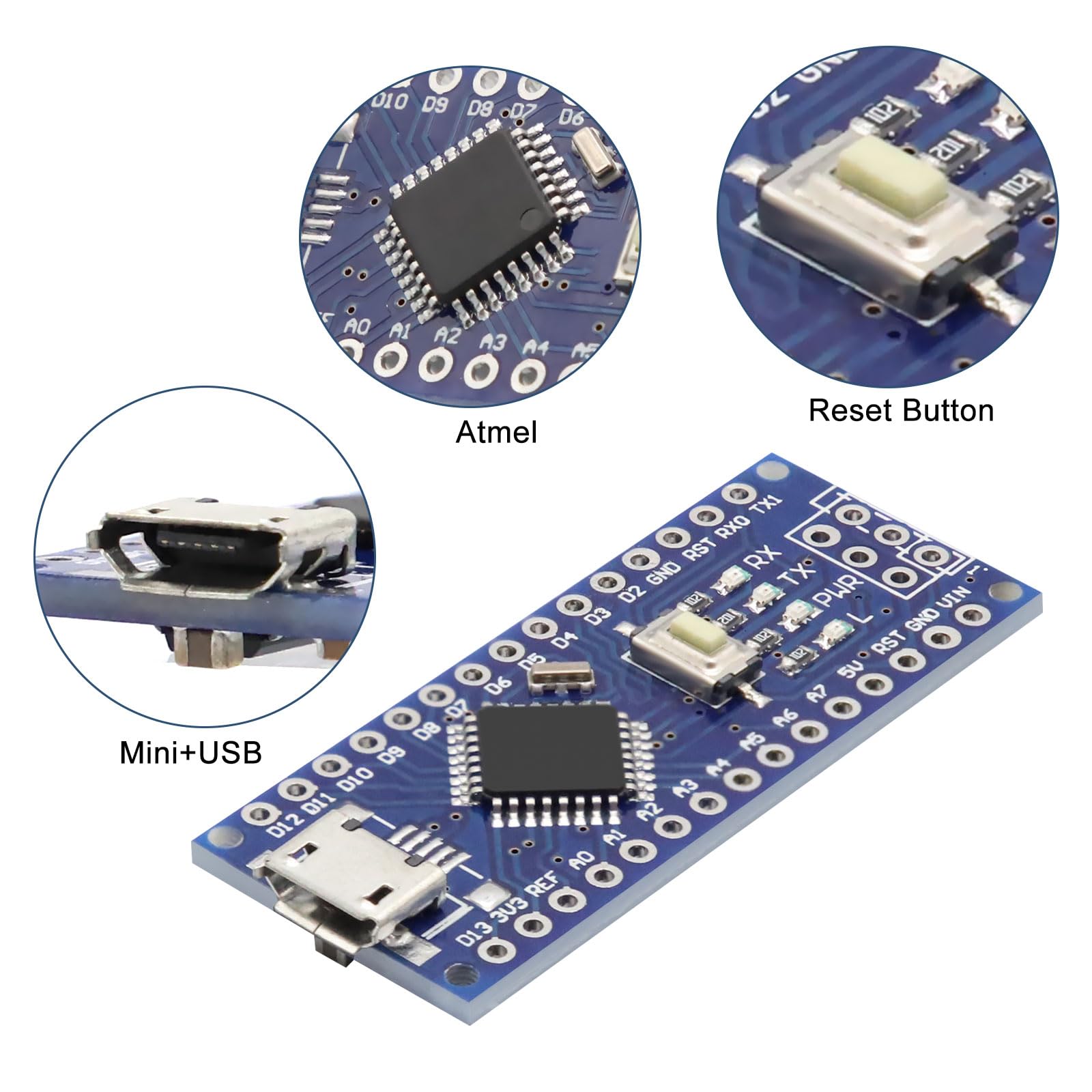 Courant continu par broche : 3,3 V 50 mA. Mémoire flash : 32 Ko (dont 2 Ko utilisé par le chargeur de démarrage) SRAM : 2 Ko. Large compatibilité : le module CH340G 5 V 16 M Mini carte de développement de microcontrôleur avec en-têtes PIN. Le module non soudé est 100 % compatible avec Arduino et utilise des puces CH340 copy of Stabilisateur WIN&WIN WIAWIS ACS NANO avec POIDS Performance : le module Nano est compatible avec Arduino et offre des performances élevées avec une fréquence d'horloge de 16 MHz et 32 Ko de mémoire flash (y compris 2 Ko pour le chargeur de démarrage). Chatière SWING Microchip, 22,5 x 16,2 x 25,2cm, ouverture avec micropuce Le module non soudé est 100 % compatible avec Arduino et utilise des puces CH340., Connecteur MINI : la carte de développement est équipée d'un connecteur Mini moderne qui facilite la connexion et la programmation de l'appareil, offrant une connexion plus robuste et réversible par rapport aux ports micro USB traditionnels. Alimentation flexible : la carte de développement nano prend en charge l'alimentation via USB (5 V) et la broche Vin (7-12 V), ce qui permet une utilisation polyvalente dans diverses applications. Microcontrôleur 5v 16mhz ELEGOO 3 Pièces Carte Nano ATmega Modèle De 328P Micro Contrôleur Module Board Compatible Avec Module Nano CH340 5V 16MHz EEPROM : 1 Ko 14 ports d'entrée/sortie numériques : TX, RX, D2 ~ D13., 6 ports PWM : D3, D5, D6, D9, D10, D11., Entrées analogiques : 8(A0 ~ A7). Module Nano Mini Port - Carte de développement compatible avec Arduino, 5 V/16 MHz, mini connecteur Caractéristiques techniques : Tension d'alimentation : 5 V (USB) / 7-12 V (vin) Tension E/S : 5 V. Fréquence d'horloge : 16 MHz.