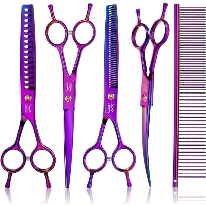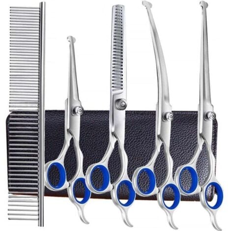 Ciseaux DOG CARE. Accessoires de toilettage et soin du pelage des chiens, chiots 【Toilettage Chien】La longueur, la courbure et l'épaisseur de la lame de nos ciseaux pour animaux sont soigneusement étudiées pour répondre aux besoins de toilettage des animaux et vous permettre de couper facilement les poils. GLADOG Kit De Ciseaux De Toilettage Pour Chien Avec Pointes Rondes De Sécurité, Ciseaux De Toilettage Pour Chien Avec Pointes Rondes De Securite Ciseaux De Toilettage Professionnels 6 En 1 Pour Chiens Ciseaux Tranchants Et Durables Pour Chiens Chats Animaux Vous recevrez deux paires de ciseaux pour animaux de compagnie (dimensions : 17 x 5 x 2 cm, poids : 50 g), un plat et un à dents, pour un entretien facile des poils. Vous pouvez choisir en fonction des parties à couper pour répondre à vos besoins quotidiens. Leur lame de sécurité est sûre et facile à utiliser. Ciseaux à désépaissir 2,5 x 16,5 cm., 1 peigne d'entretien., 1 chiffon de nettoyage Dents larges et dents serrées, adaptés aux animaux de petite et moyenne... Ciseaux Pour Animaux De Compagnie, Kit De Ciseaux De Toilettage Pour Chien Professionnel Exquis 【Toilettage Du Chien】Ces ciseaux de toilettage pour animaux sont conçus de manière ergonomique pour une coupe plus confortable, réduisant ainsi la fatigue, la tension et la fatigue lors de la coupe des poils après de longues heures de travail. Ces deux ciseaux ont des fonctions différentes. 【Ciseaux Toilettage Chien】Ces ciseaux de toilettage pour chiens restent aiguisés longtemps et permettent une coupe en douceur.