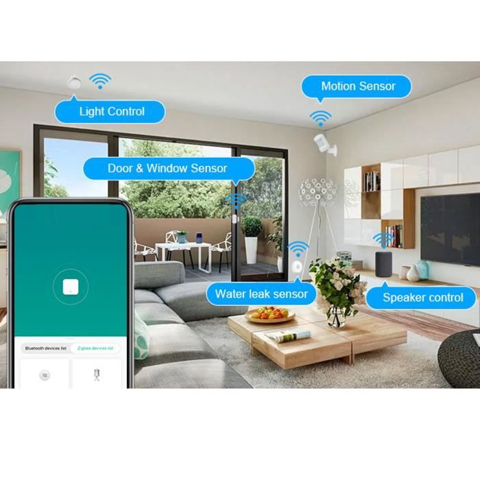 Avec ces passerelles compatibles wifi et bluetooth, vous allez pouvoir facilement intégrer vos appareils compatibles Mesh et Zigbee et les piloter depuis partout dans le monde avec votre application iOS ou android. C'est idéal pour étendre votre système de domotique Elesion, Smartlife ou Tuya Transformez votre maison avec notre passerelle intelligente : [connectivité avancée] et gestion facile du réseau (idéal pour la domotique et l'automatisation). Zigbee Gateway PRISE EXTÉRIEURE INTELLIGENTE Tuya Avec Connectivité WiFi Et Design Hub Connectivité Avancée 100m Agissant comme un centre de contrôle centralisé, cette passerelle permet une gestion fluide et unifiée de votre réseau domotique, facilitant l'interaction entre différents produits et marques. Passerelle intelligente Bluetooth Mesh [idéale pour la domotique]. Sa [connectivité avancée] et sa gestion du réseau rendent l'installation facile. Avec une installation simple et une fonctionnalité intuitive, cette passerelle s'intègre facilement dans votre système domotique existant. Contrôlez les lumières, les thermostats, les caméras et plus encore depuis une seule application, simplifiant la gestion de vos appareils intelligents Outils d’IA pour la domotique : améliorez votre expérience de la maison Contrôlez les lumières, les thermostats, les caméras et plus encore depuis une seule application, simplifiant la gestion de vos appareils intelligents. [Passerelle intelligente] Bluetooth [mesh], connectivité avancée (jusqu'à 100m) et gestion du réseau (protocoles : Zigbee, Z-Wave), idéal pour [domotique]. Sa technologie Mesh garantit une portée optimale et une couverture supérieure, réduisant les zones mortes et assurant que chaque coin de votre maison est connecté.