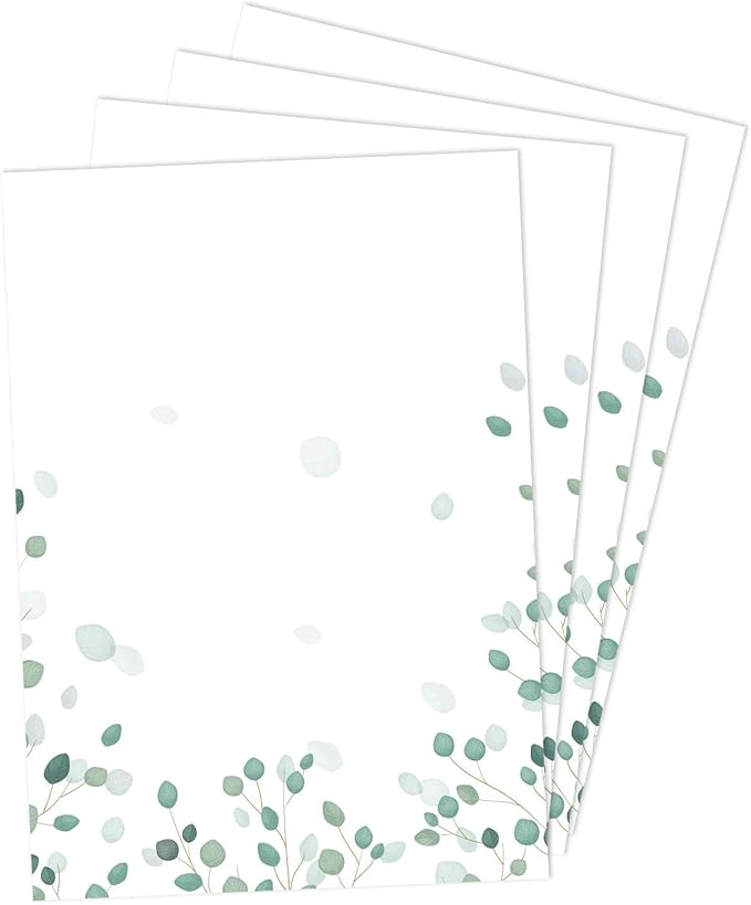 Lettre dorée E ornée de branches d'eucalyptus aquarelles vertes isolées Lot de 50 feuilles au format A4, grammage 90 g/m² - assez épais pour être qualitatif, mais pas trop pour passer dans l'imprimante. Motif vert et blanc, imprimé sur une face seulement 50 feuilles d'eucalyptus A4 Lot de 50 feuilles A4 (21x29.7cm) en 110g/m², entièrement teinté dans la masse pour une couleur uniforme. Surface mate et lisse, compatible imprimantes jet d... Papier Bureau Imprimable Lot De 50 Feuilles De Papier à Lettre Eucalyptus DIN A4 I Blanc Papier Eucalyptus A4 90g/m² 50 feuilles d'eucalyptus au format A4