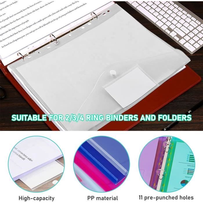 Pochette Perforée Lot 24 Pochettes Plastique A4 Perforées - 6 Couleurs Avec Étiquettes - Fermeture Velcro Pochettes Perforées Classeur Pochette De Rangement ZMDMAH Lot De 12 Pochette A5 Transparents Avec Bouton Pression - Porte-documents Avec Notes Autocollantes - Pochette Plastique A5-24 X 17 Cm - Pour Papiers, Documents, Reçus Et Enveloppes Porte-documents Polypropylène Résistant Le paquet contient 12 pièces. Nous simplifions les choses et nous assurons que vous obtenez le meilleur pour moins cher. Matériau : ces chemises en plastique A5 sont fabriquées en polypropylène, qui est très résistant. Transparent : Les pochettes en plastique A5 sont transparentes, vous pouvez donc trouver facilement les documents que vous souhaitez. Largement utilisé Sécurisé : le couvercle à charnière avec bouton-pression maintient les documents en sécurité. Porte-documents A5 pour un rangement sécurisé de vos documents · Protège les documents contre les dommages physiques et cosmétiques · Peut contenir jusqu'à 150... Largement utilisé : le classeur A5 est conçu pour garder vos fichiers en sécurité au bureau, à la maison ou à l'école. Choisissez Qwork, où votre argent travaille plus dur pour vous.
