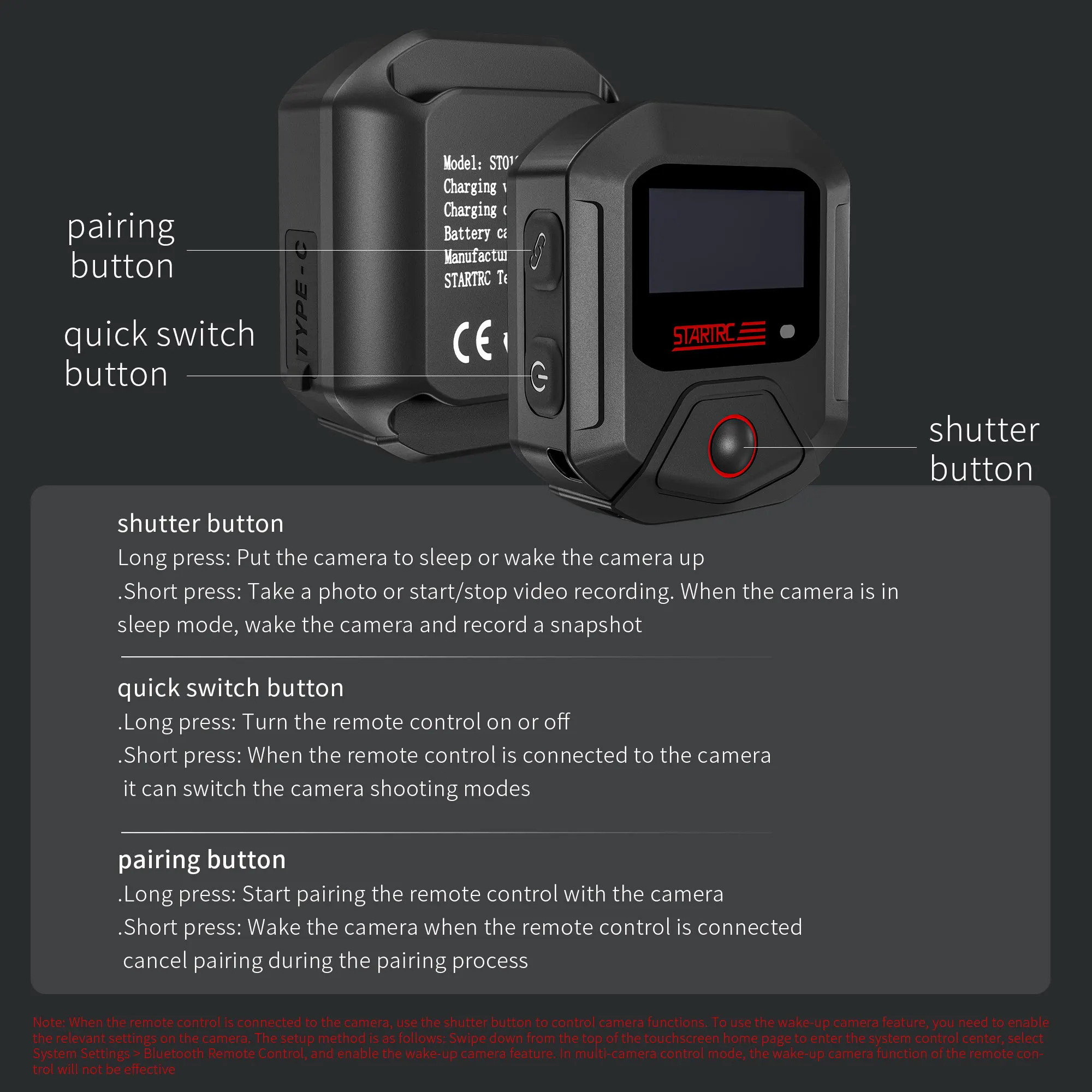 Plusieurs méthodes de fixation : une pour la fixation du poignet, adaptée pour les sports de proximité, avec un design étendu pour une utilisation universelle, la fixation du guidon pour les vélos, les motos et la canne à pêche, facilitant le transport et l'assemblage. Compatibilité : la télécommande Bluetooth est spécialement conçue pour les caméras DJI Osmo Action Series, exclusivement pour les caméras DJI OSMO 360/Action 5 Pro/Action 4. Grâce à la connexion avec l'appareil photo, vous pouvez réaliser la prise de vue à distance en contrôlant la caméra Caractéristiques : Matériau : ABS. Les deux sangles conviennent aux sports de plein air et à la photographie d'aventure. Facile à transporter et à ranger. Léger et portable : léger, compact et portable, tient parfaitement dans une poche, un sac à dos, un sac pour la prise de vue en plein air. 1 manuel d'utilisation (français non garanti) Acheter Radiocommande GPS Bluetooth pour Osmo Action - DJI Connexion stable, opération simple et pratique, facile à utiliser. Niveau d'étanchéité : IPX4., Portée de la télécommande : 30 mètres., Protocole Bluetooth : BLE 5., 0., Fréquence de fonctionnement : 2,402-2,480 GHz. Facile à utiliser : contrôlez facilement votre appareil photo avec la télécommande Bluetooth, répondant pleinement à vos besoins quotidiens de prise de vue. DJI Oso Action ini Verlängerungsstab, kopatibel it Oso Action 3, Oso Action 4,Oso Action... Télécommande Bluetooth DJI Osmo Télécommande GPS Bluetooth Pour DJI Osmo Action Action 4 Longue durée de vie de la batterie, lorsqu'elle est complètement chargée 3 heures, elle prend en charge 30 heures de fonctionnement continu sans vous soucier de la durée de vie de la batterie.