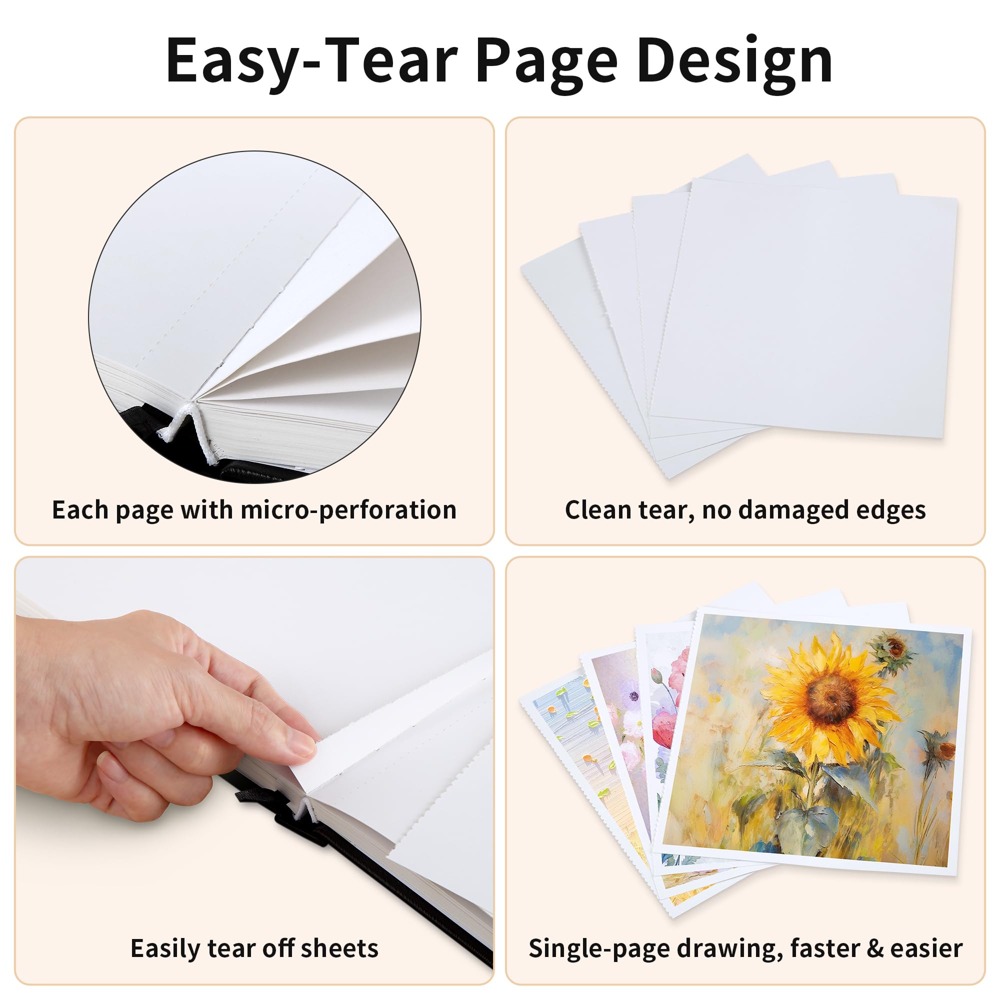 Grâce aux micro-perforations, chaque feuille peut être détachée proprement, offrant la flexibilité d’un carnet de croquis ou d’un papier dessin pour partager vos œuvres. Idéal comme carnet de dessin portable pour les voyages et les sorties, parfait pour noter vos idées créatives à tout moment. 📝 Papier épais 200g/m², sans acide – Texture lisse qui empêche la pénétration et les bavures La couverture rigide en PU imperméable protège vos créations contre l’humidité et la poussière. Assez d’espace pour vos dessins, esquisses, cahier de croquis, illustrations, journaling et études d’objets, adapté aux débutants comme aux artistes. 🗃️ Couverture rigide en PU imperméable – Élégante, résistante à l’eau et aux taches. Sketchbook Papier 200g Goldeluxe Sketchbook 21×21cm, 156 Pages (78 Feuilles), Papier épais Carnet De Voyage 📓 Carnet de croquis carré (21×21 cm) – Format pratique, plus petit qu’un A4 mais plus grand qu’un A5., Idéal comme carnet de dessin portable pour les voyages et les sorties, parfait pour noter vos idées créatives à tout moment. 📑 Pages micro-perforées – Design détachable qui permet d’arracher facilement une feuille sans abîmer les bords. Parfait pour partager vos créations ou utiliser le carnet comme cahier page blanche polyvalent. 📝 Papier épais 200g/m², sans acide – Texture lisse qui empêche la pénétration et les bavures. Ohuhu A4 Carnet à Dessin avec Couverture Rigide - 78 Feuilles/156 Pages Compatible avec carnet aquarelle, papier aquarelle, feutres à alcool, crayons de couleur, fusains et stylos, garantissant des couleurs vives et durables. Artway Studio - Carnet à dessin avec couverture rigide - papier sans...